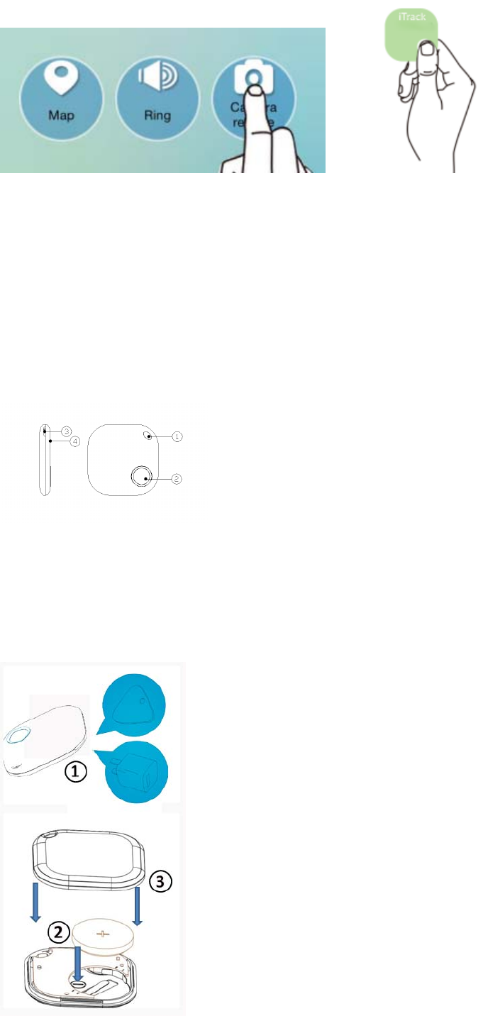 2. Button: for pairing with phone, wake up the iTrack device and camera remote