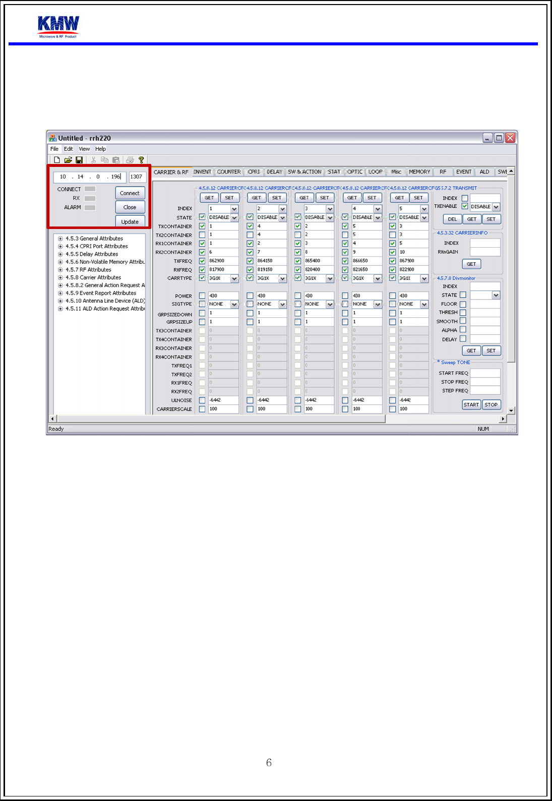 Input RRH’s IP and click the Connect button
