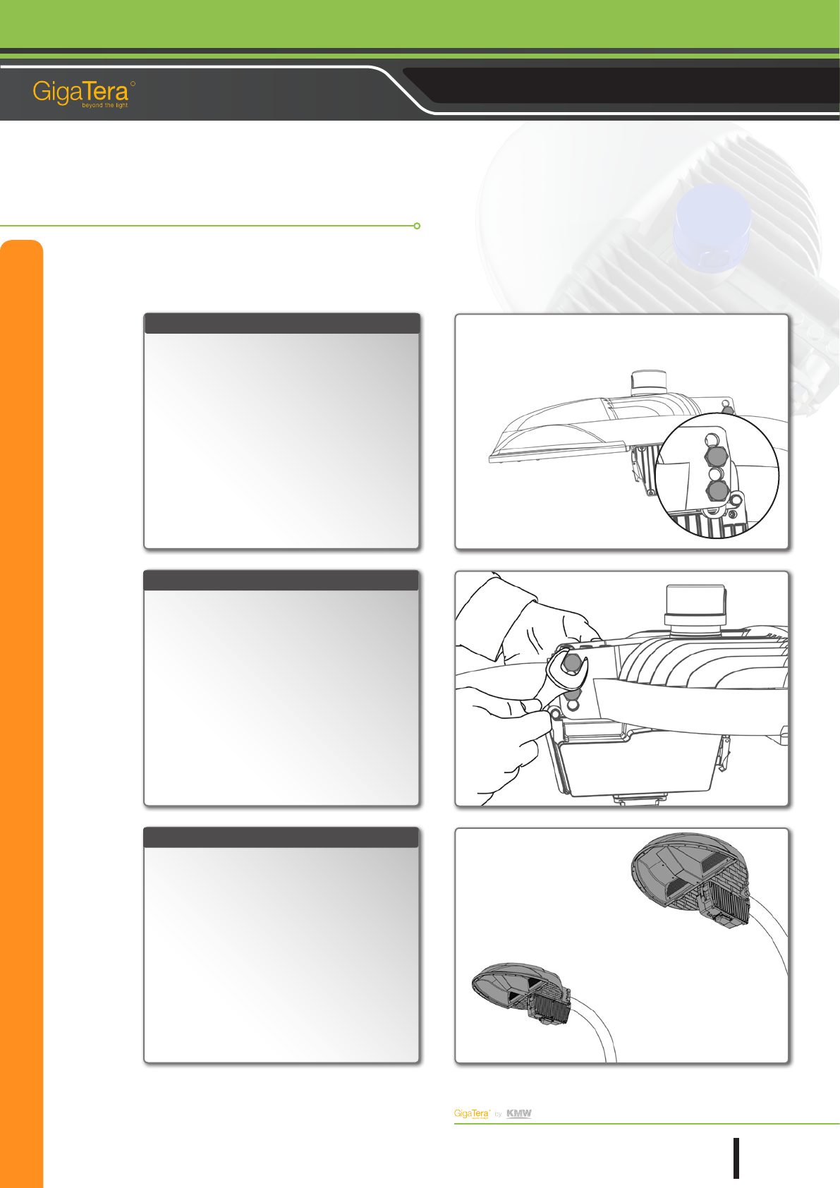 This manual describes how to compose, install, and operate LED streetlamps.