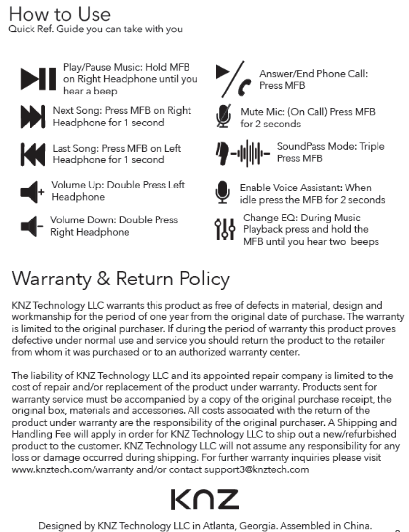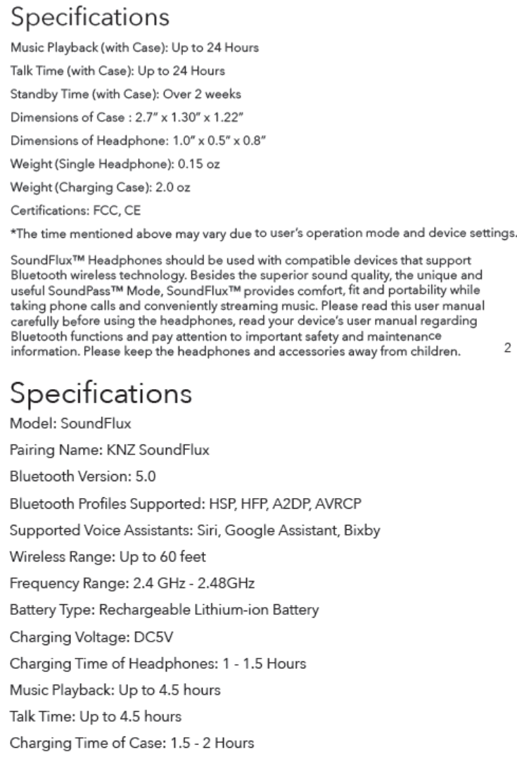 KNZ Technology SOUNDFLUX Wireless Headphones User Manual Manual