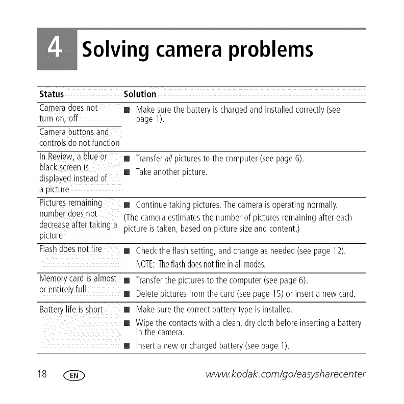 [] Disposeof batteriesaccordingto localand nationalregulations.Visitwww.kodak.com/go/kes.