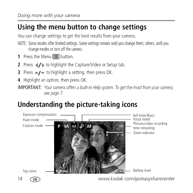 choice.Ifyou learnnothing elseabout yourcamera,learnhow to useon-cameraHelp.
