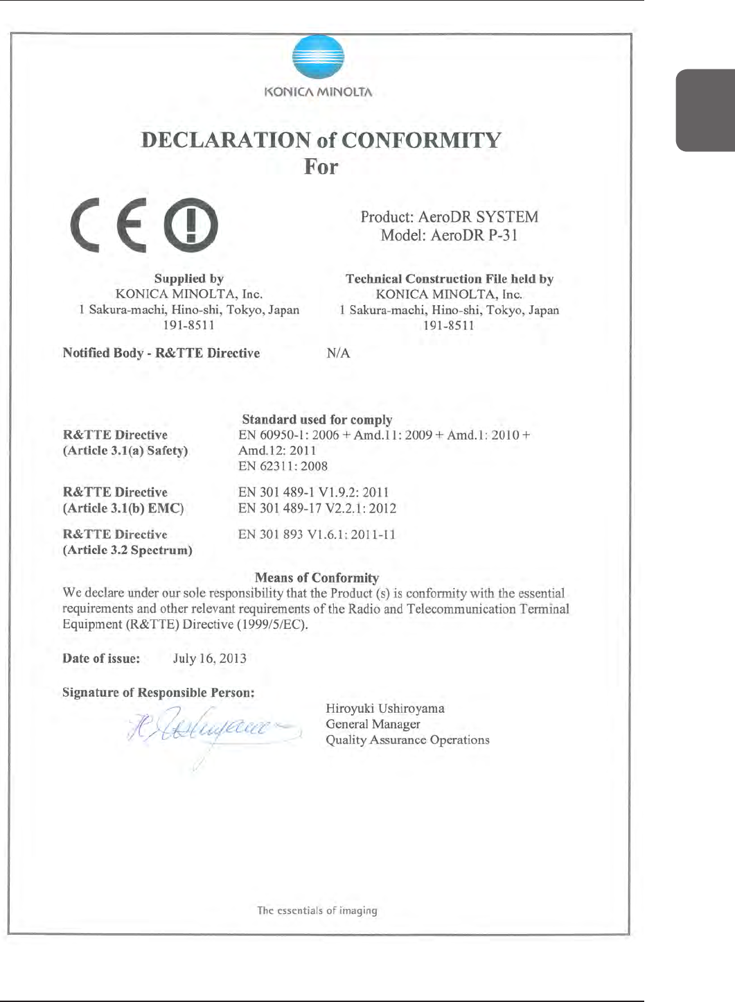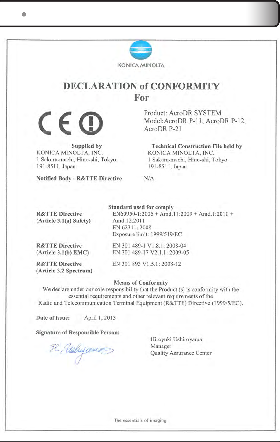 KONICA MINOLTA AERODRP5 AeroDR SYSTEM 2 User Manual Short Term Confidential 1