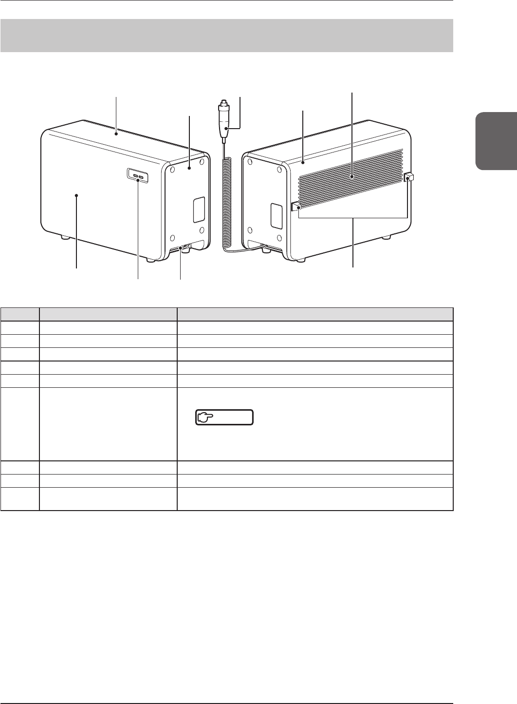 ThecomponentnamesandfunctionsoftheAeroDRBatteryChargerareasfollows.
