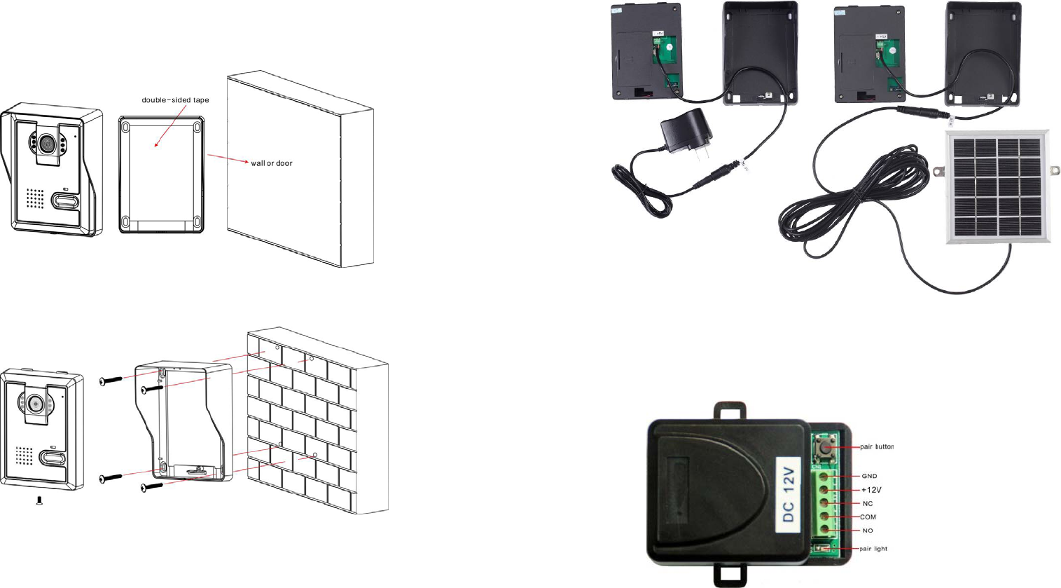 Use double-sided tape fix camera on the wall or door as the following diagram.