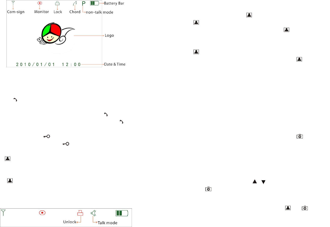 (5) ‘Monitor’ button (6) ’Unlock’ button (7) ’Talk’ button