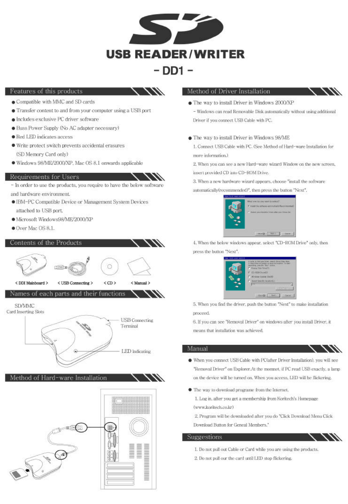 KORI Tech Co., Ltd. USB Reader/Writer Manual RWA03