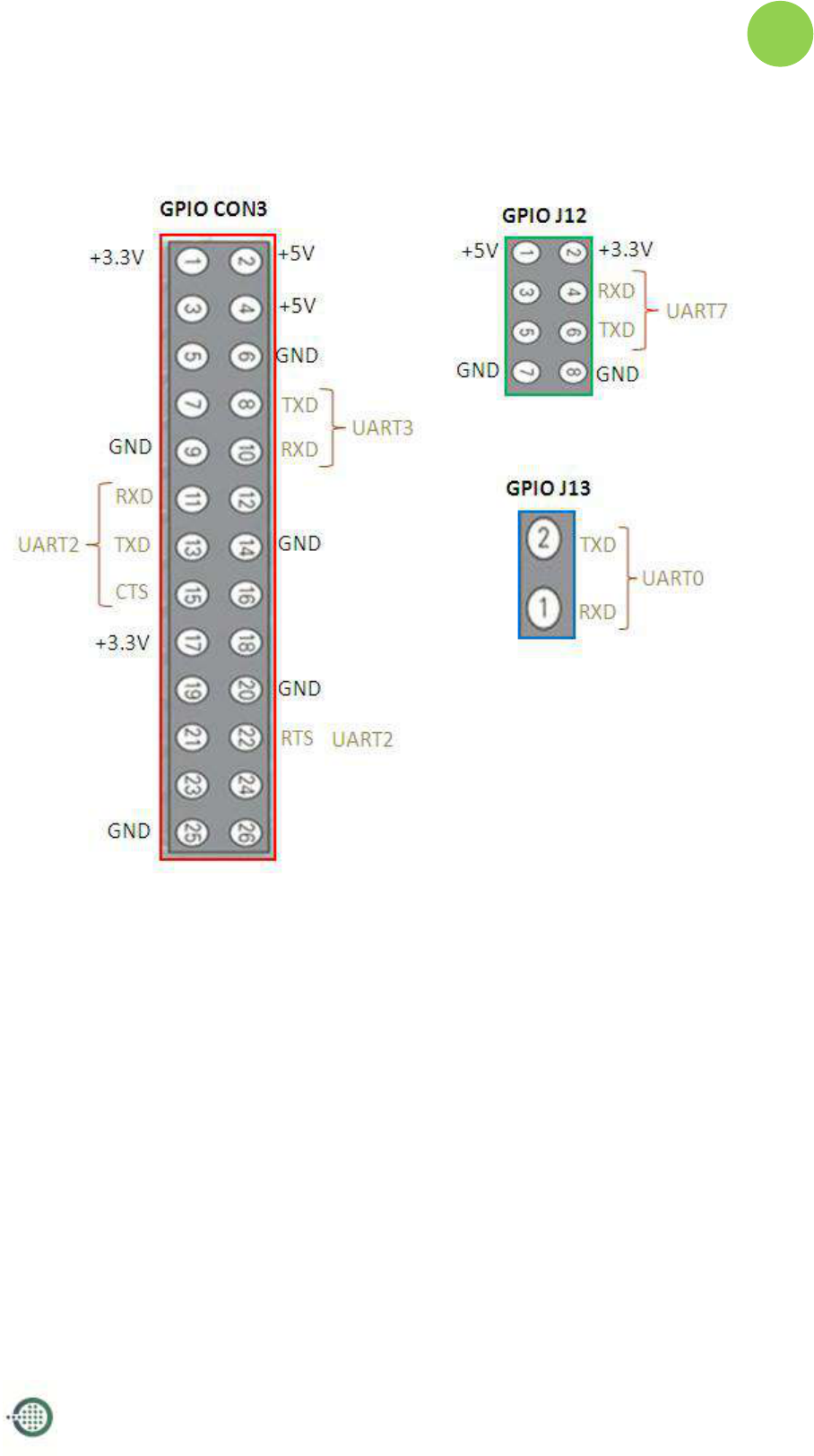 GPIO,UART,I2C bus ,SPI bus with two chip selects,