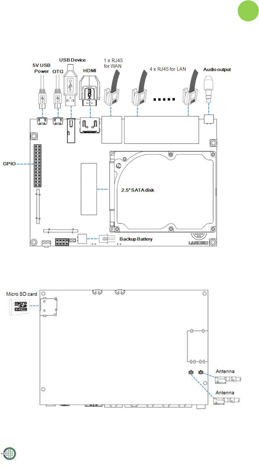 Micro SD (Max. 64GB) card slot, UP to 2TB on 2.5 SATA disk