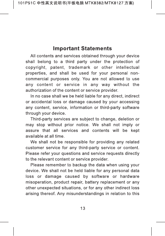 KTC Technology 00010 10.1 Inch PAD User Manual