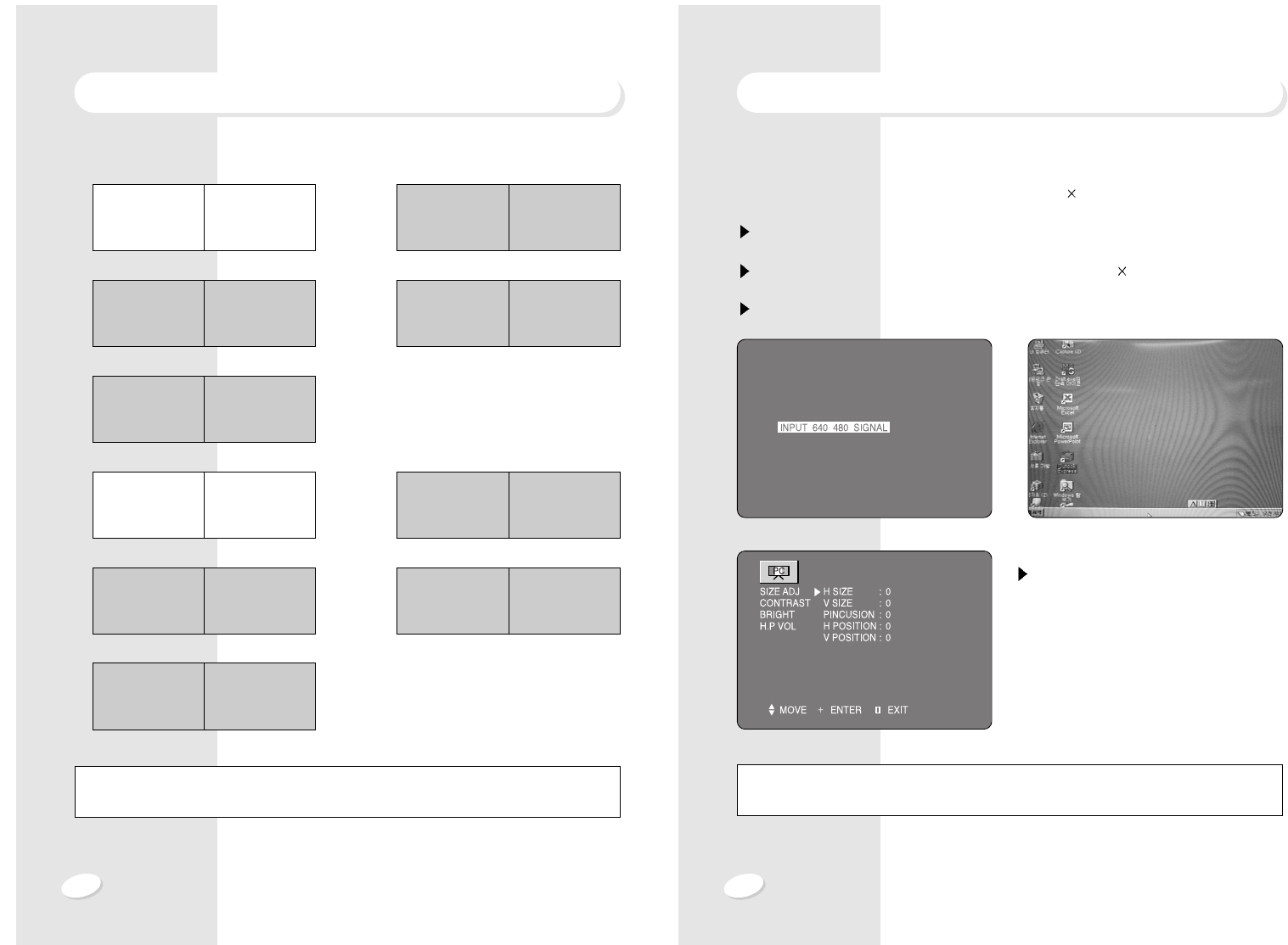 Press VOL + / - Button to adjust H size and V size.