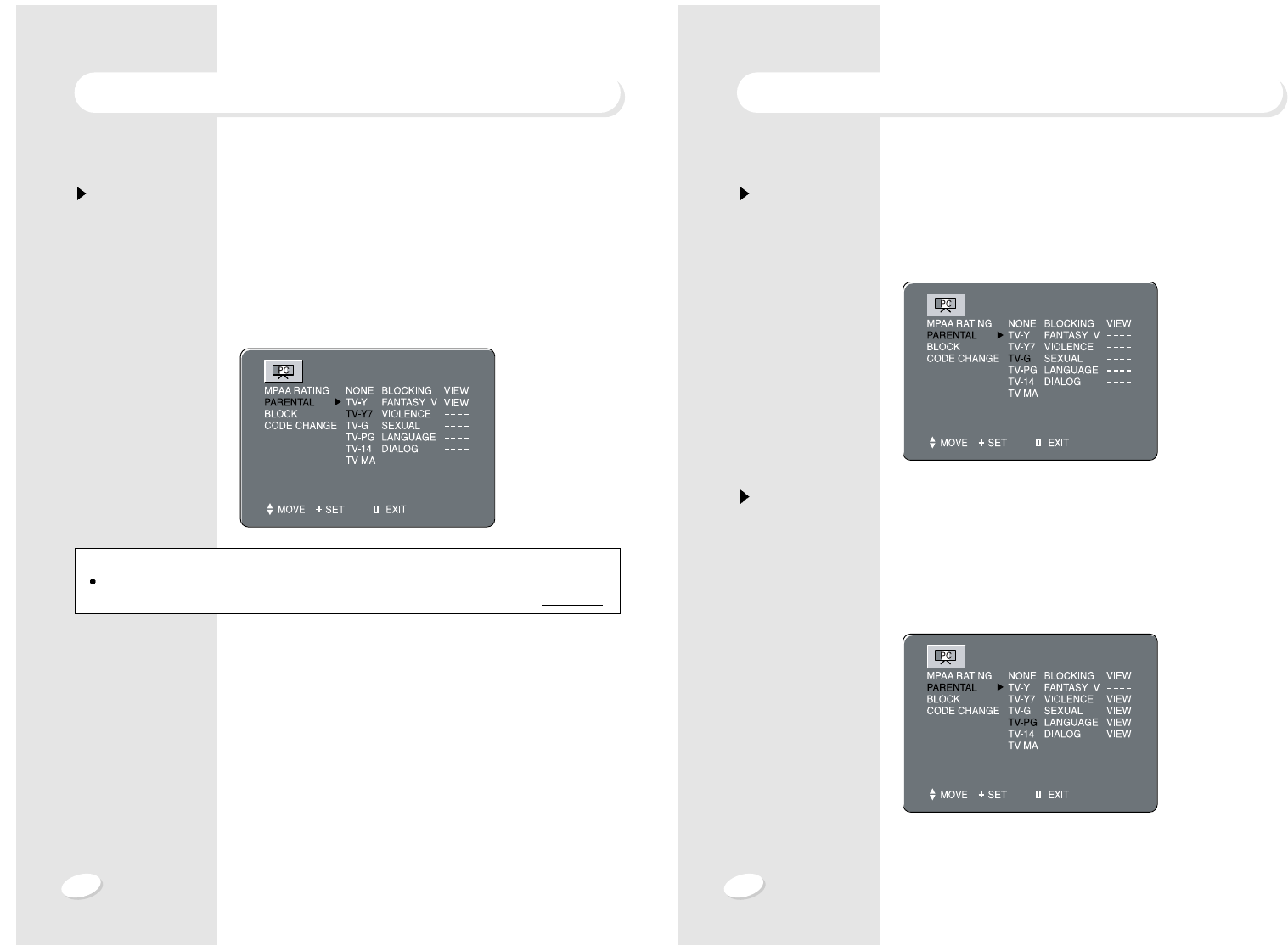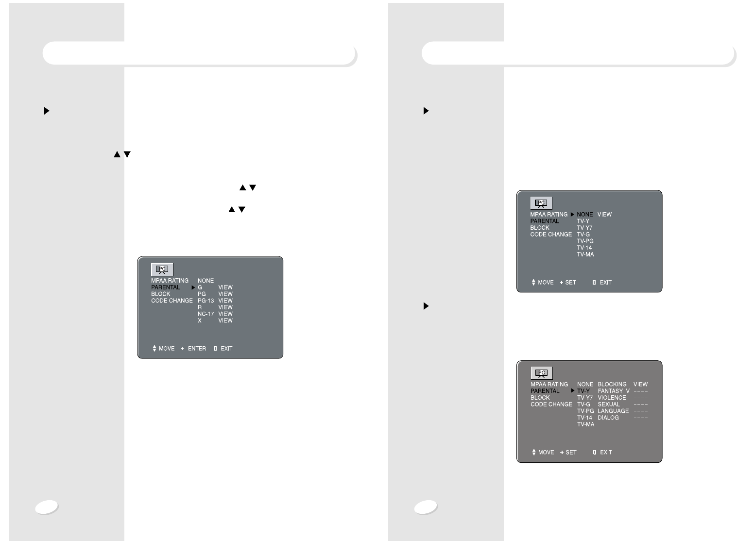 This procedure allows parents to block programs which contain MPAA ratings that they
