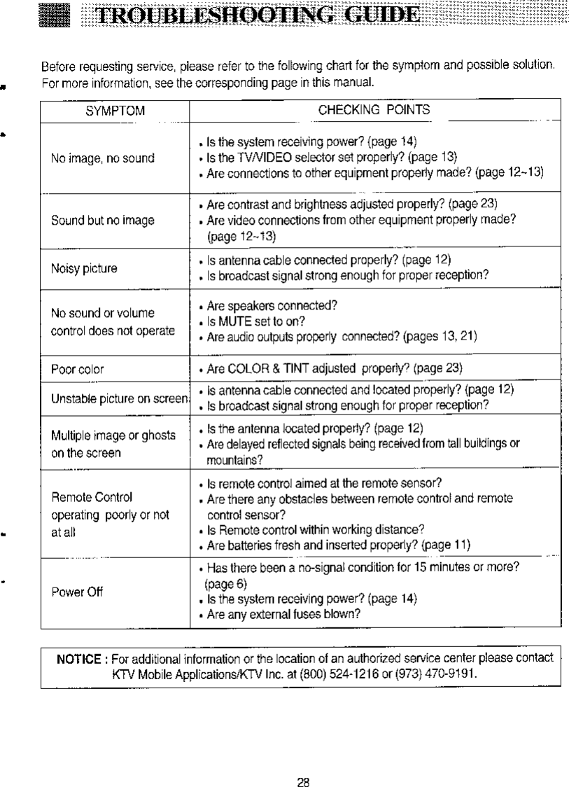 KTV Global LT07AA 7" TFT LCD Color TV Receiver With FM Transmitter User Manual