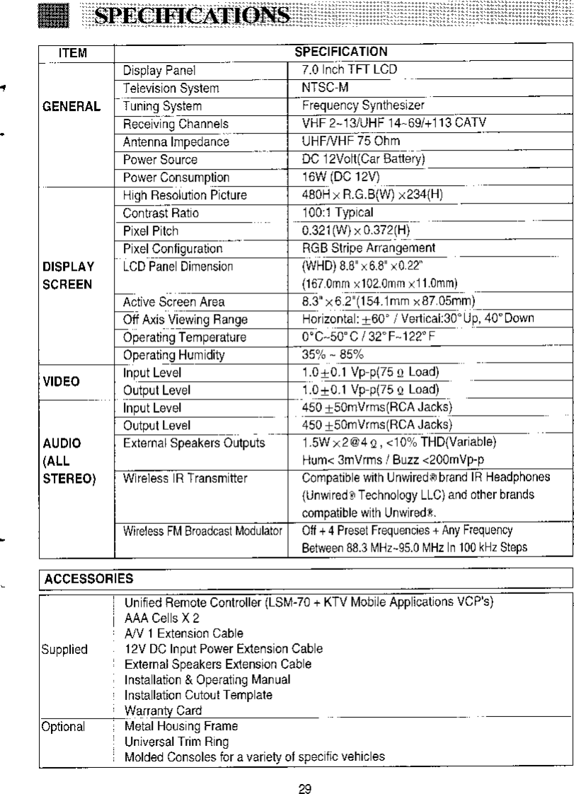 KTV Global Corporation 7" TFT LCD Color TV Receiver With FM Transmitter