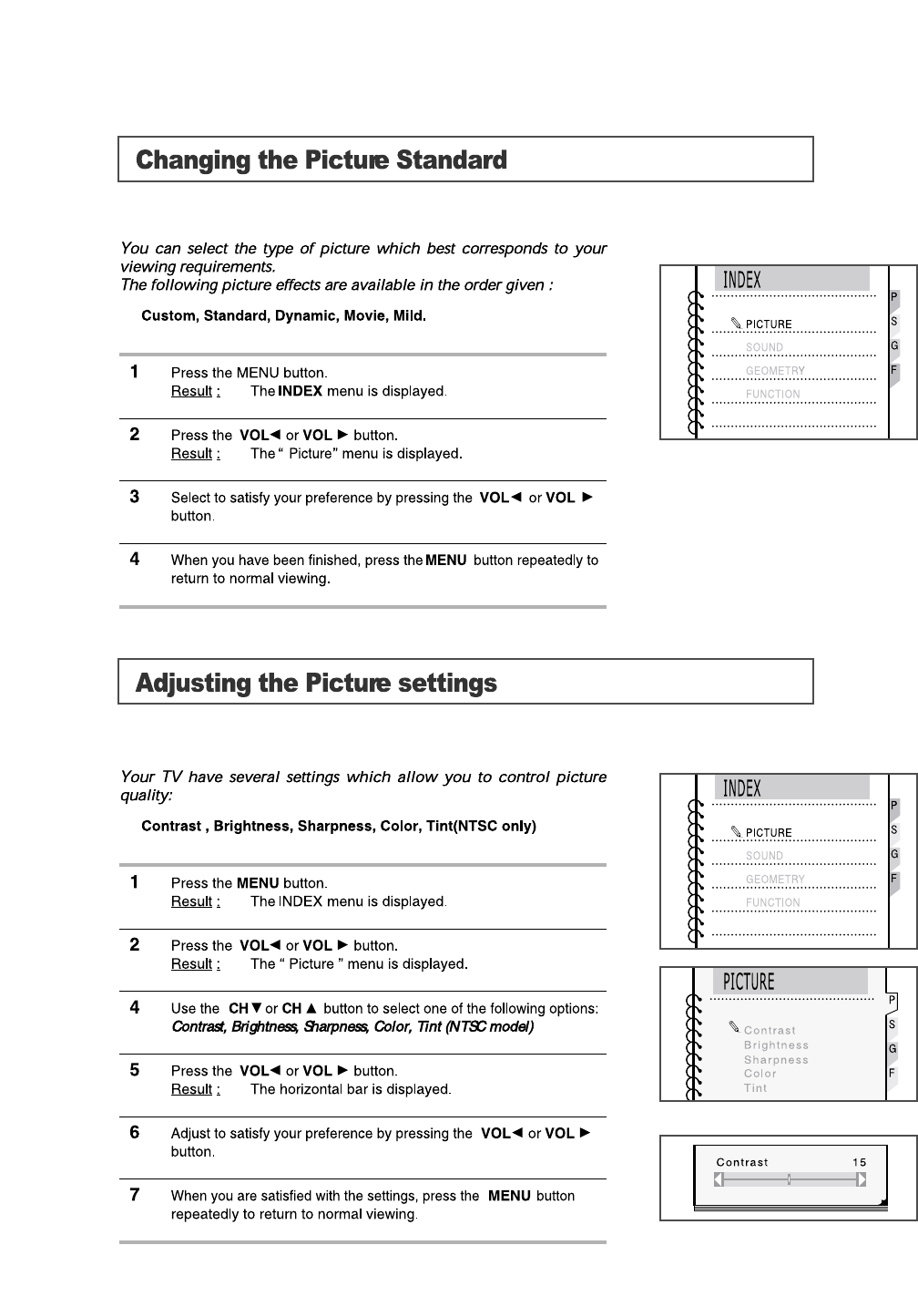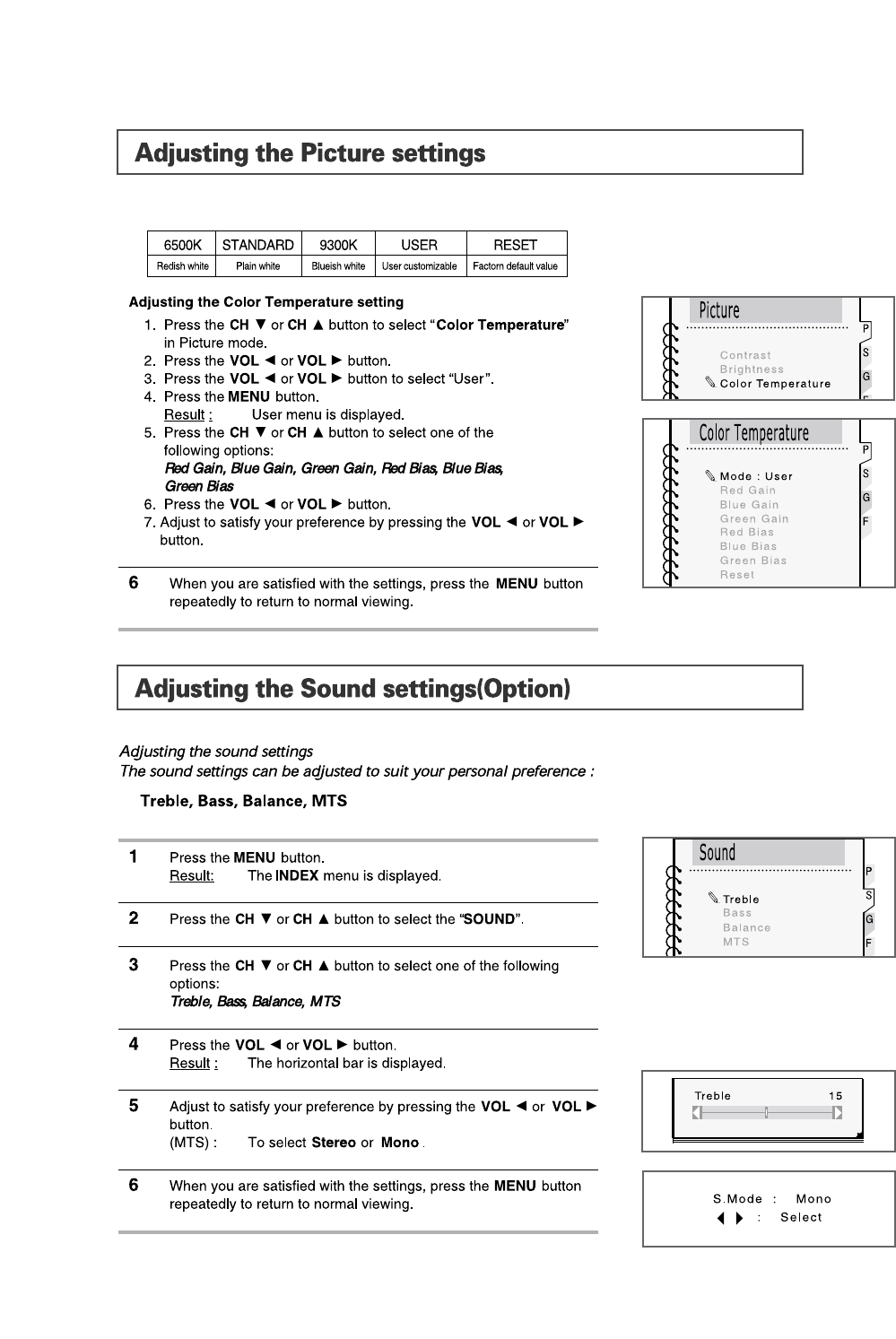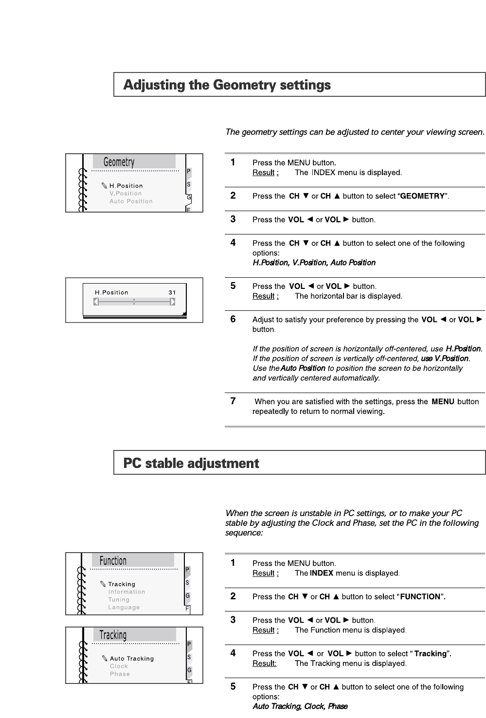 on-screen menus.
