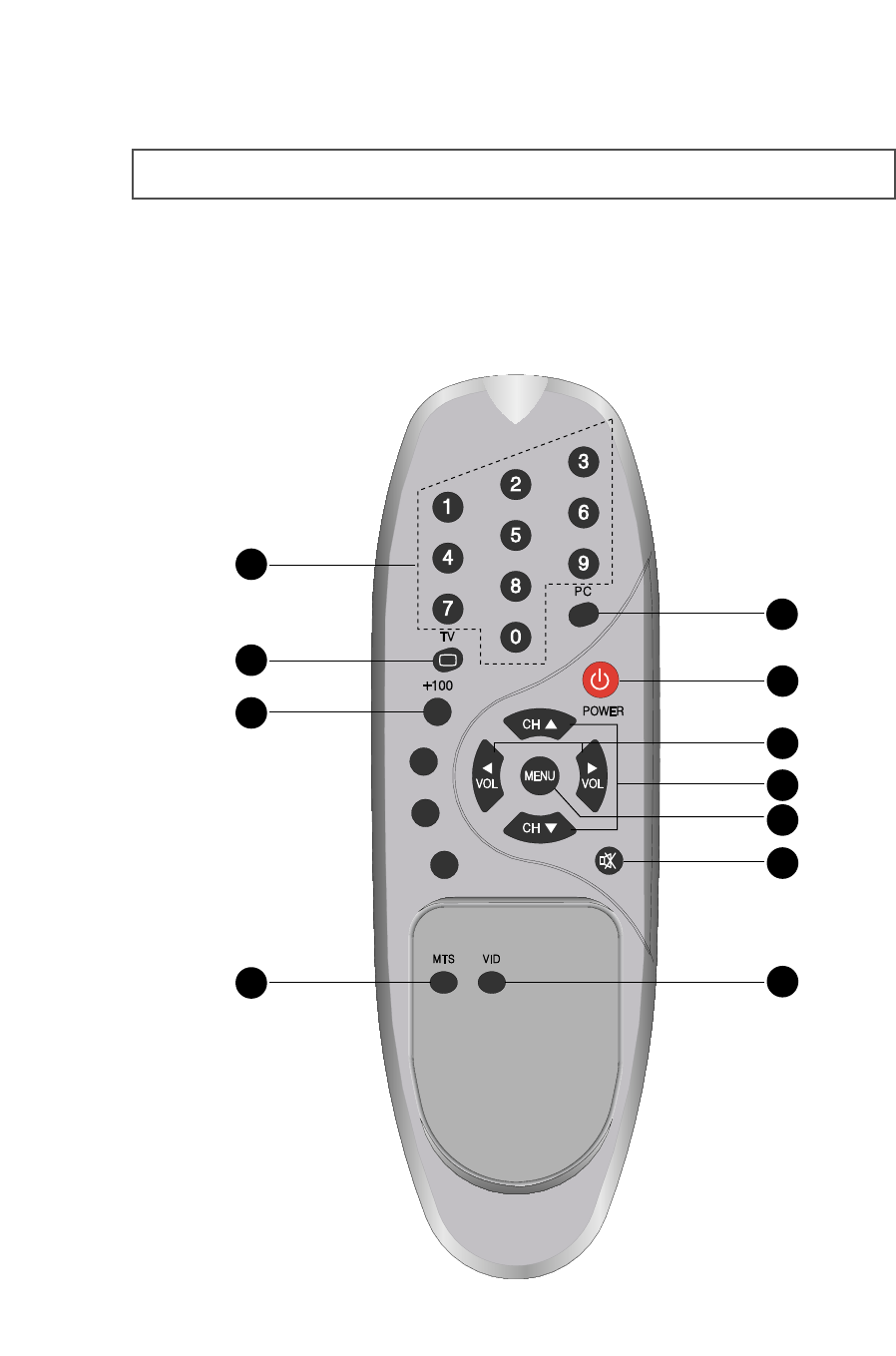 Press to select channels over 100 or one/two digit