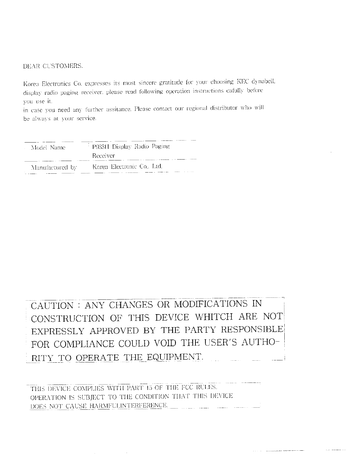 KTV Global P933H Paging Receiver User Manual 8