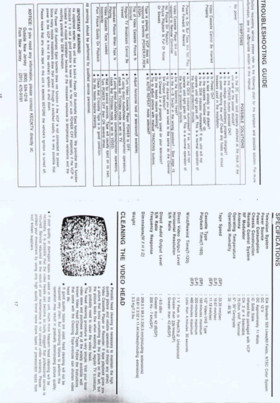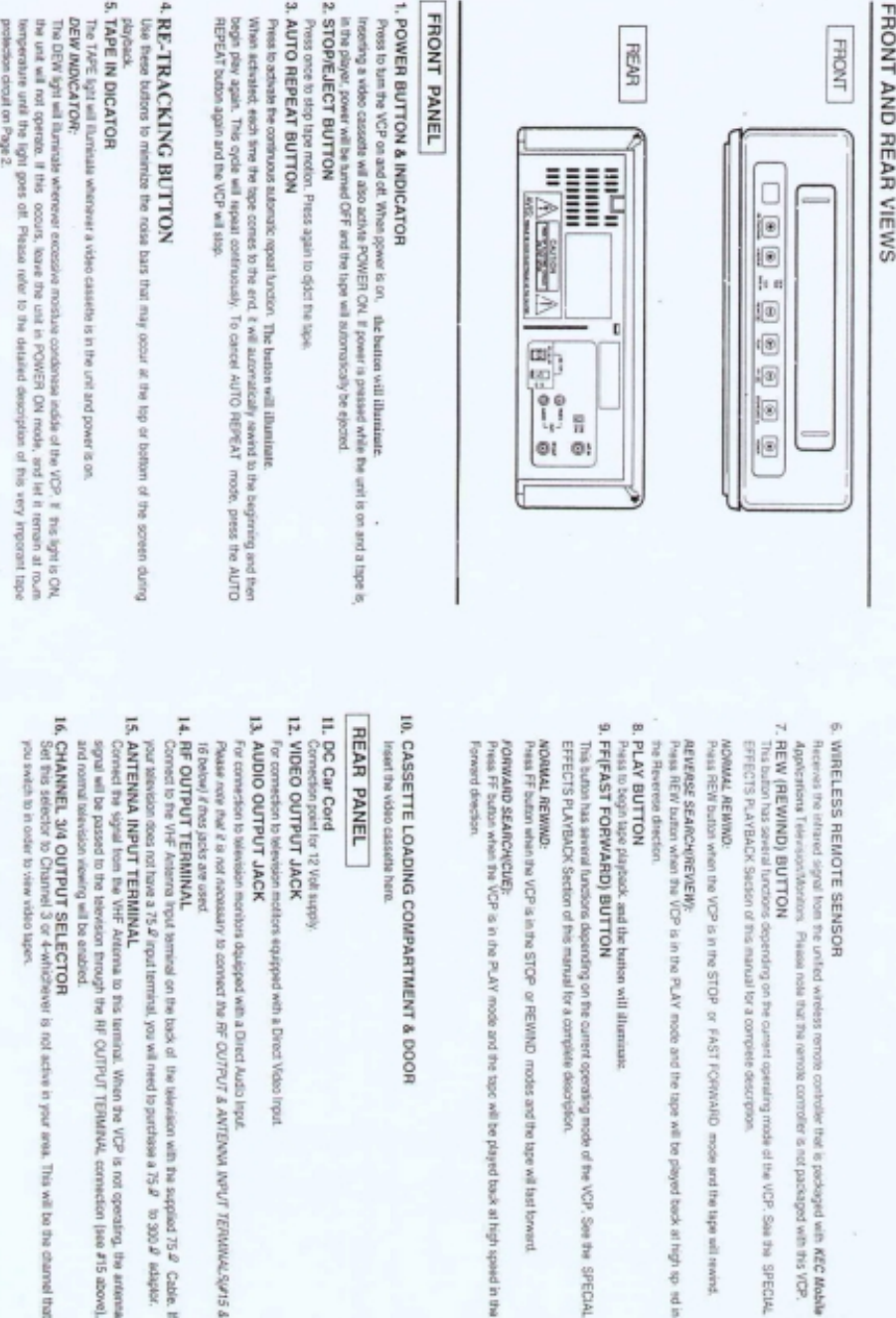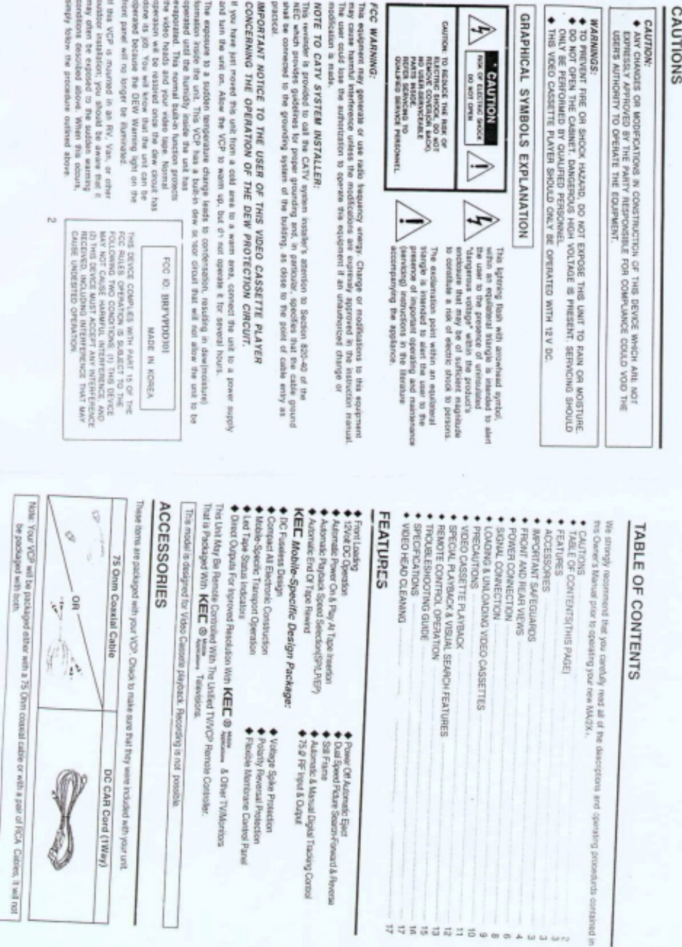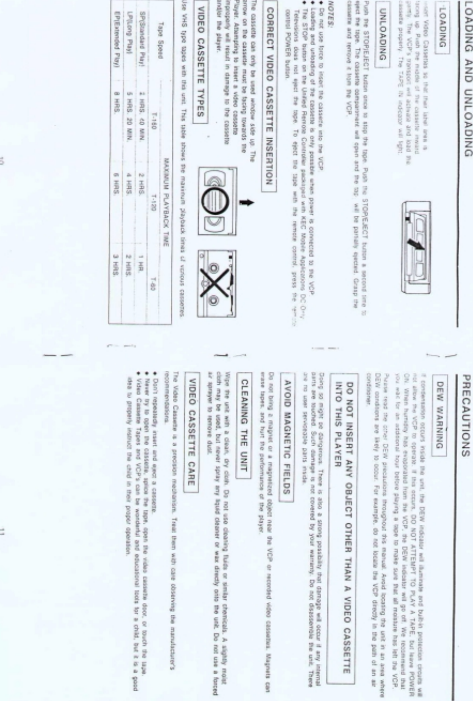KTV Global Corporation VIDEO CASSETTE PLAYER Users Manual