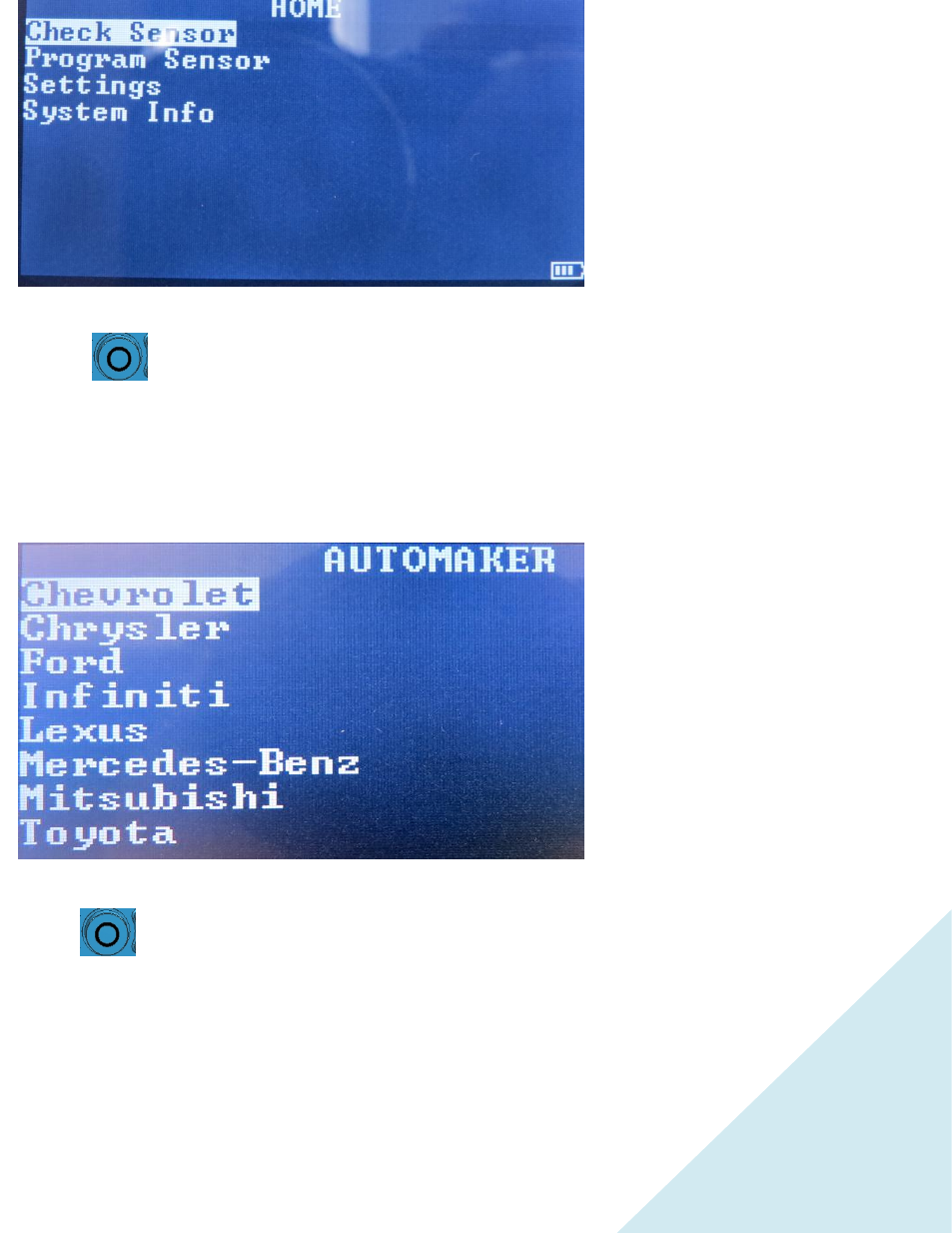 Use the proper frequencies to communicate with the motor vehicle TPM System