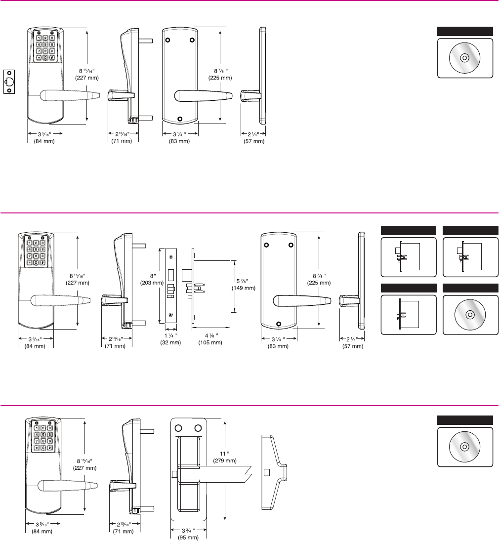 Cylindrical and Mortise—Lock assembly, installation manual, template, quick reference guide, operations