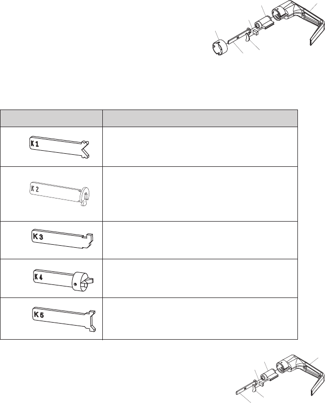 K-4 Insert key into the outside lever. Rotate key counterclockwise to stop posi-
