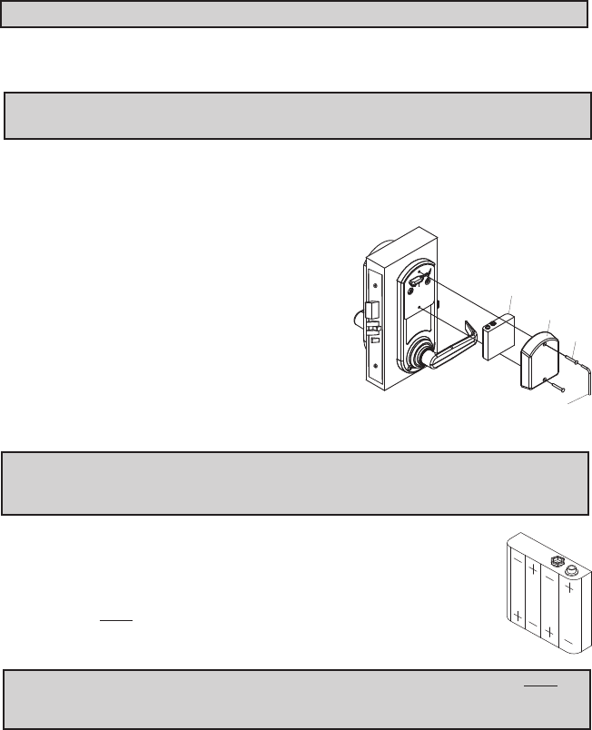 Warning: Do not install a 9V battery. Your lock operates on 4 alkaline only