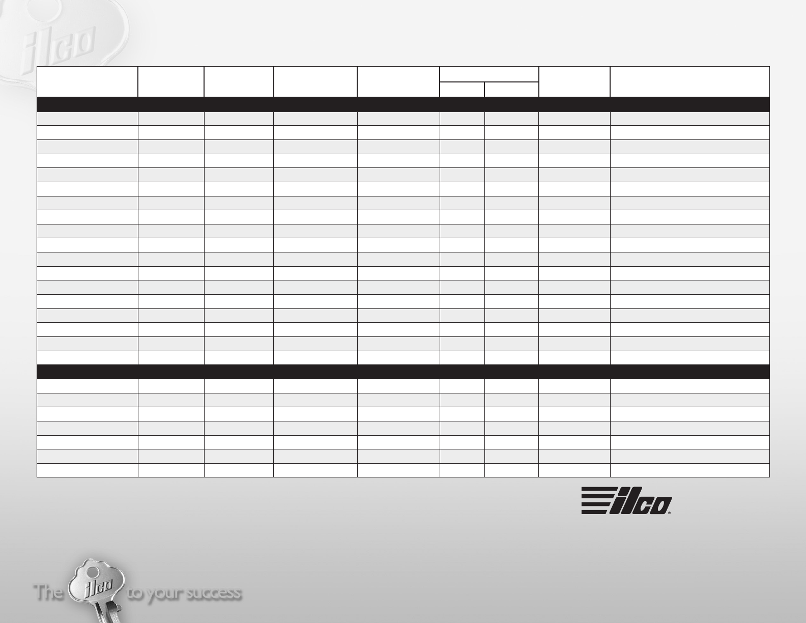 User Manual: Kaba Ilco Flip Key Application Chart Literature