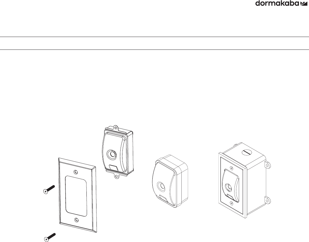 plate of the reader to the wall using the screws provided. Use the 1 ⁄" wood screws and inserts for drywall, or use