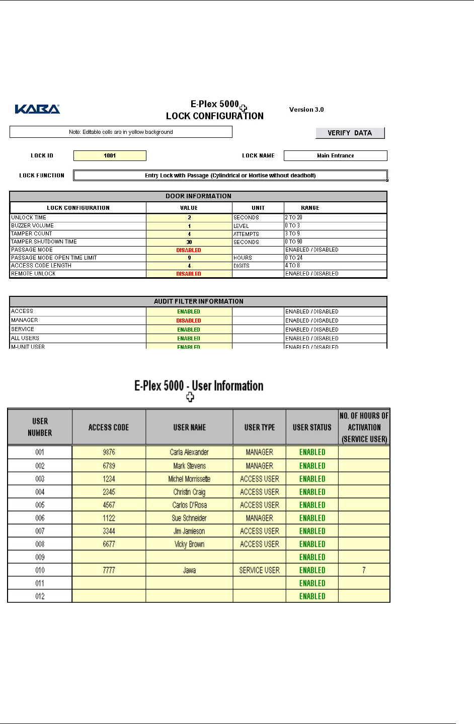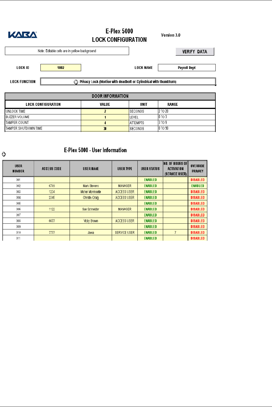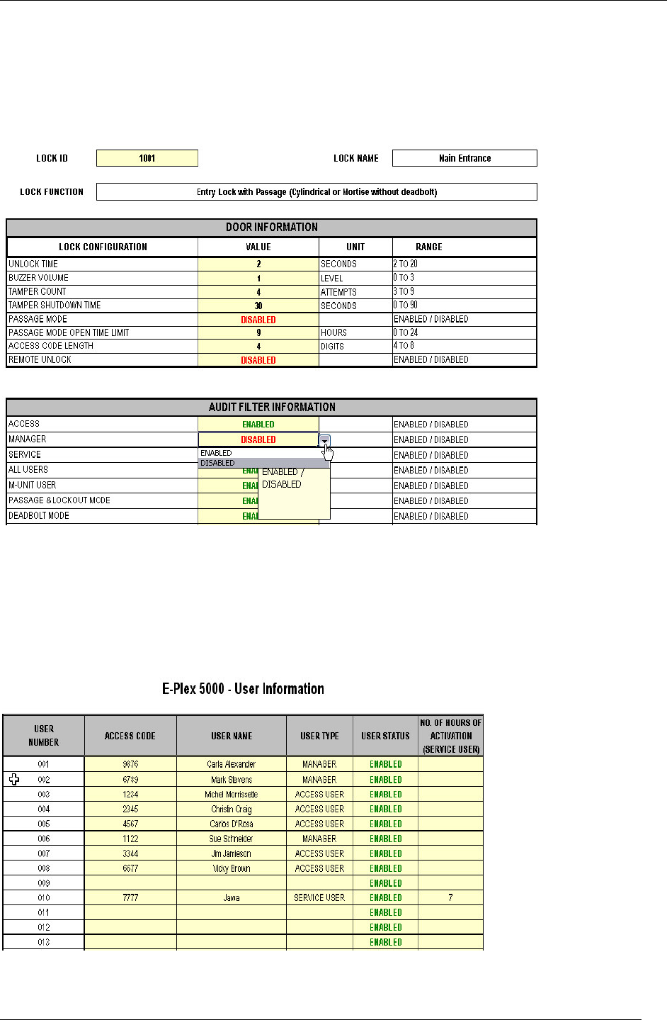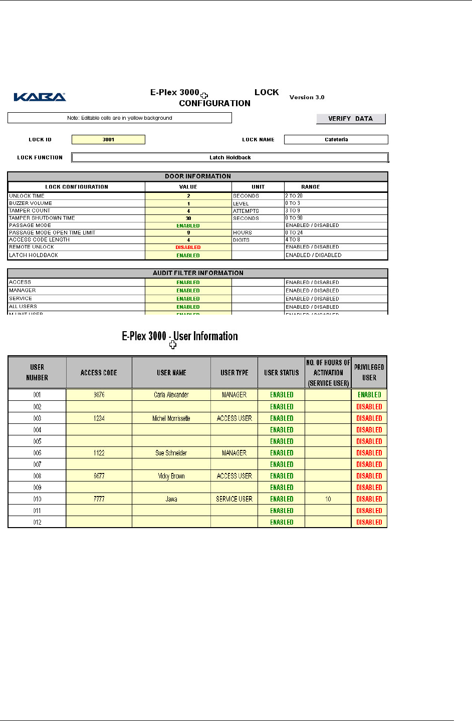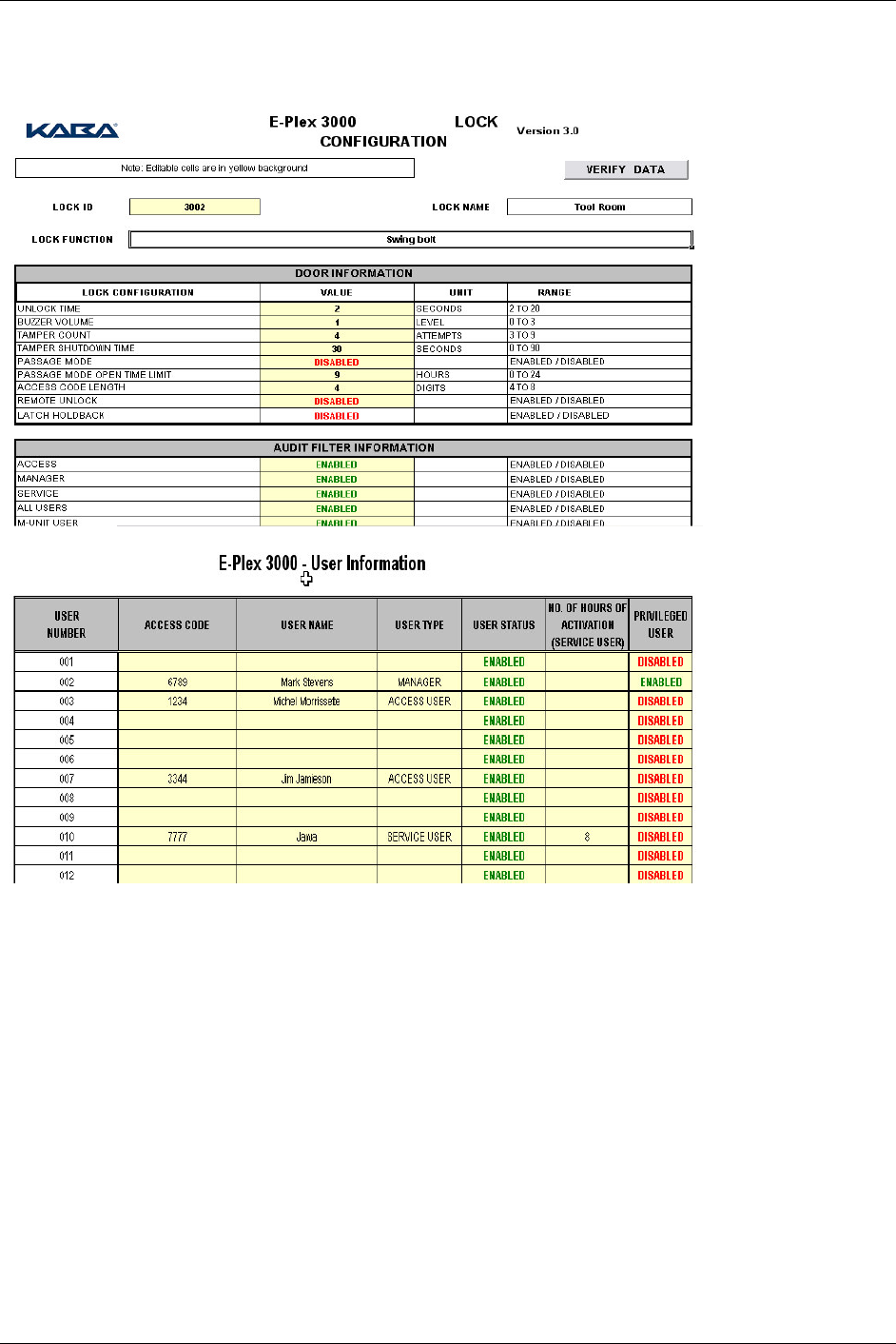 Use our Excel E-Plex templates provided for you to enter all possible configuration information on each lock