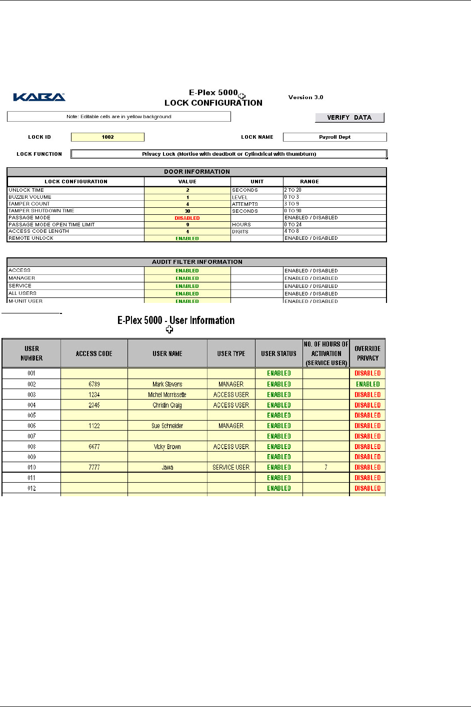 Excel files to configure, program, and audit a wide range and large number of doors.