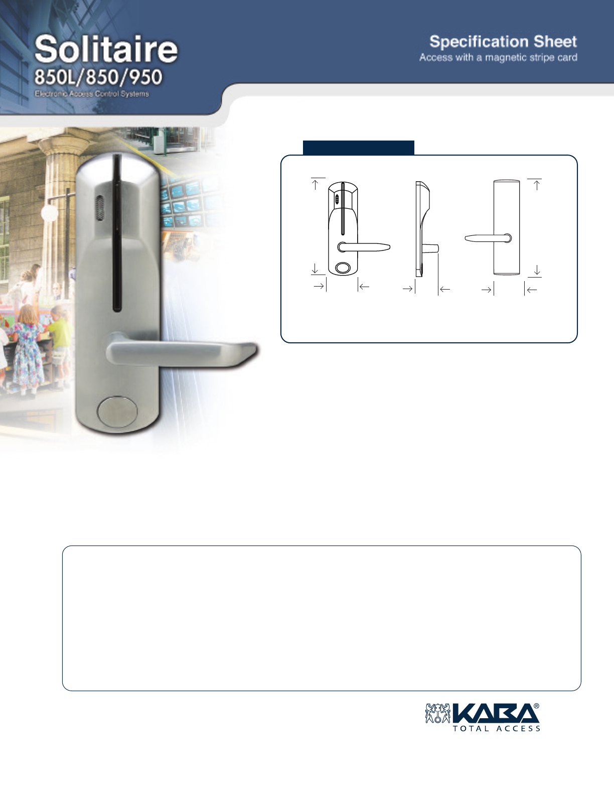 User Manual: Kaba Solitaire 850L/850/950 Specifications - KAA1001 Legacy ation - Kaba Access & Data Systems