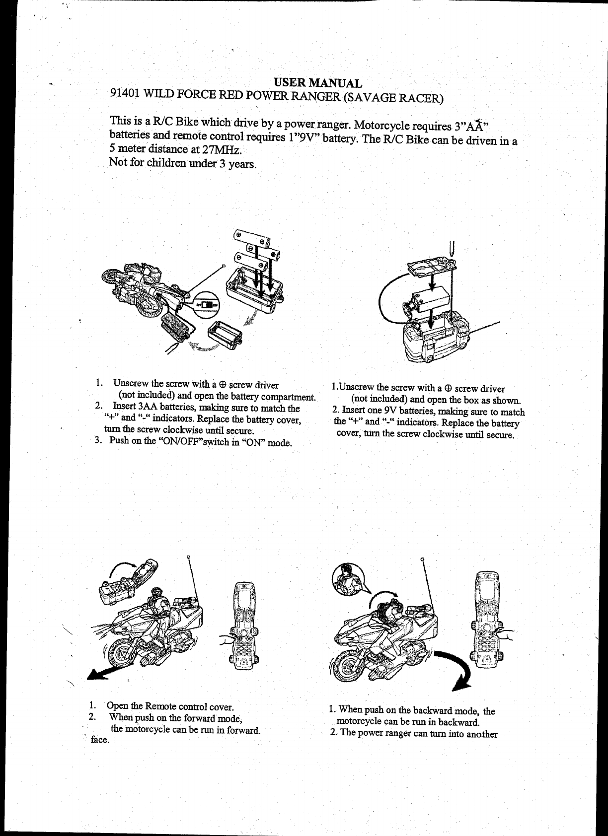 Kader Industrial Company Limited 91401 Wild Force Red Power Ranger (Savage Racer) Users Manual
