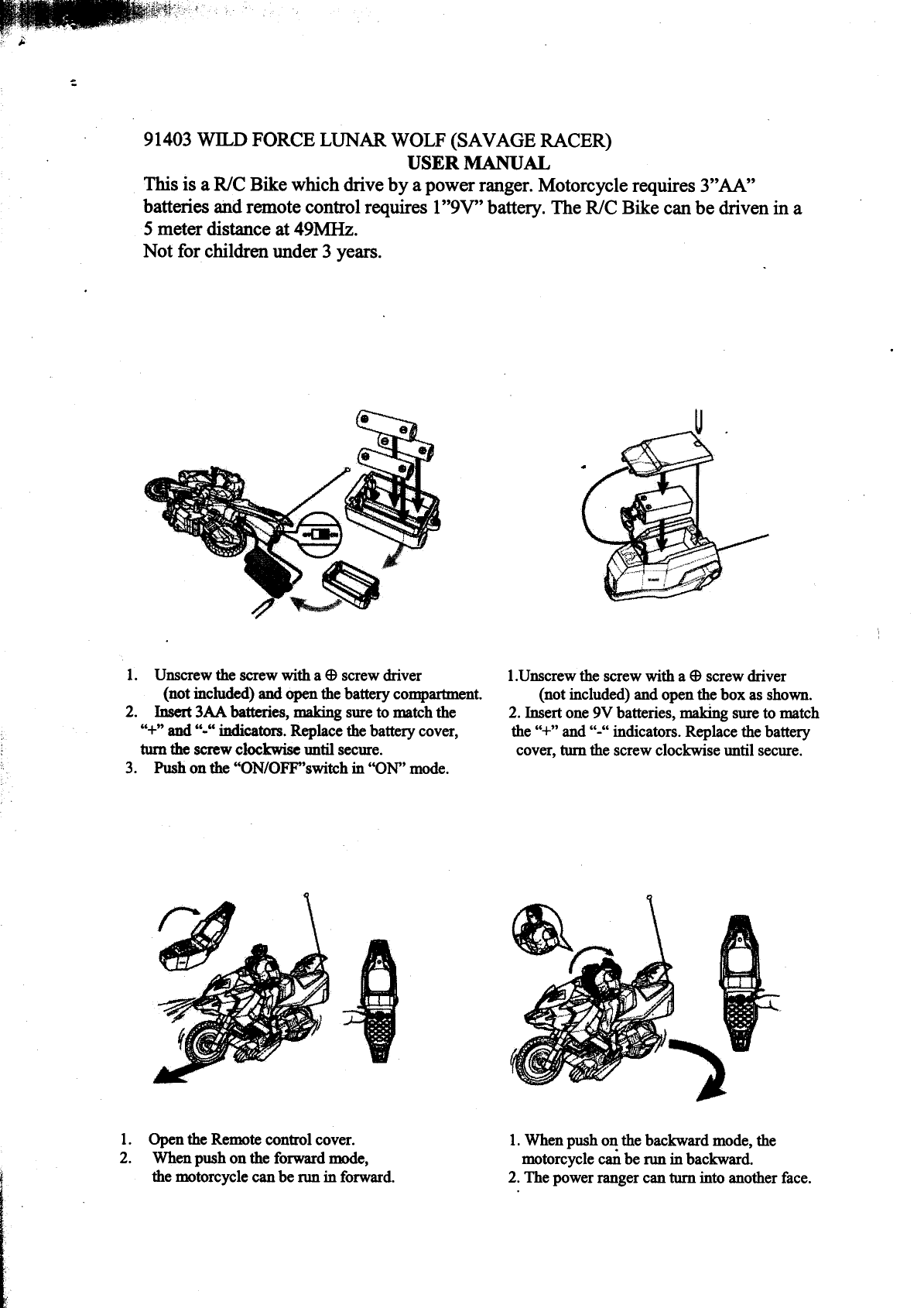 Kader Industrial Company Limited 91403 Wild Force Lunar Wolf (Savage Racer) Users Manual