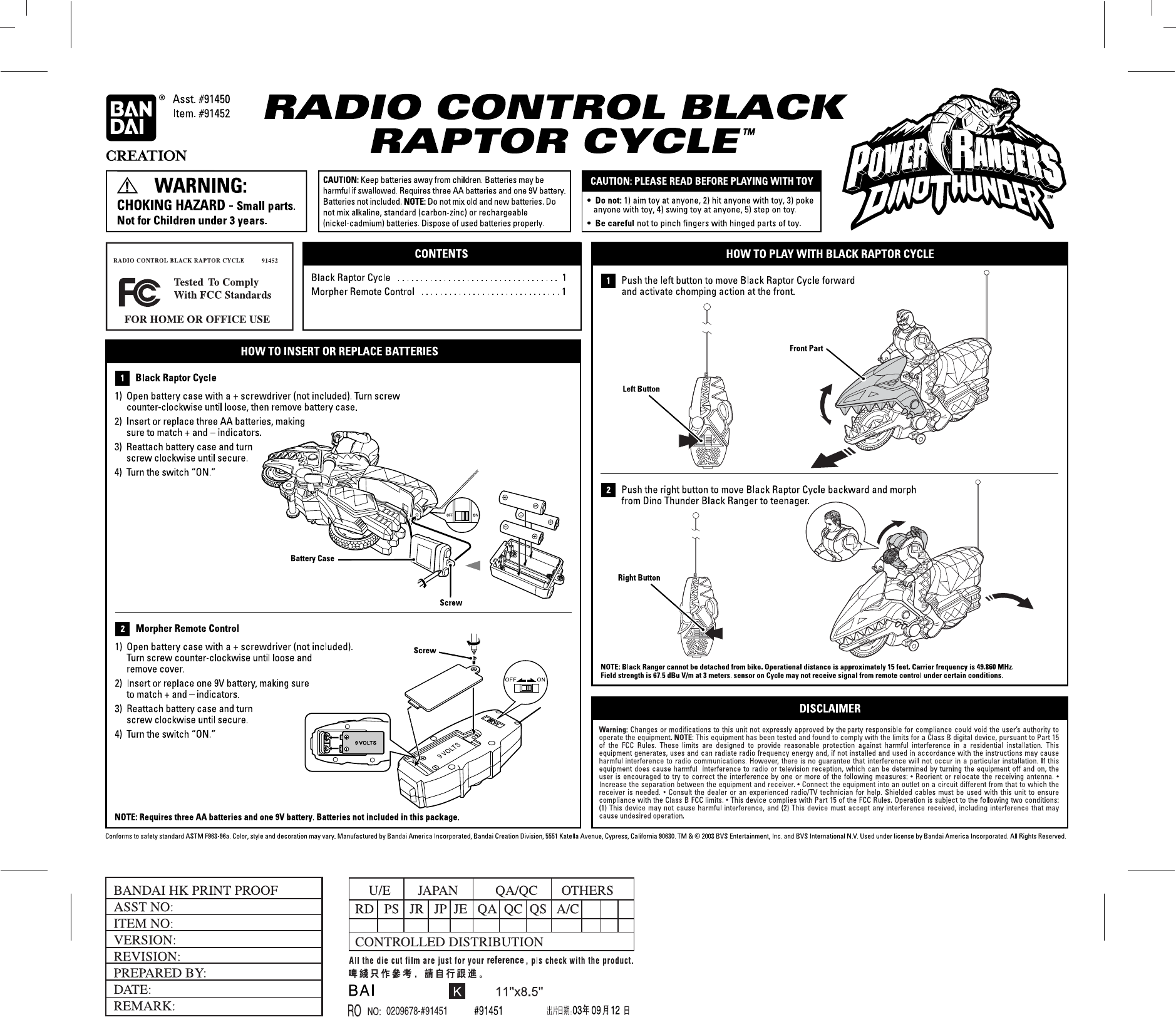 Kader BC91452 Remote Control Toy Transmitter User Manual 0210676 91452 inst