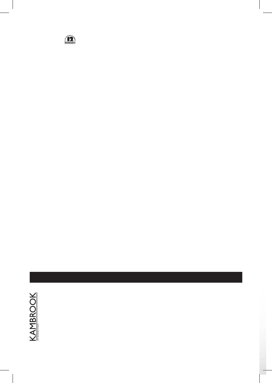 Kambrook warrants the purchaser against defects in workmanship and material for a period of 12 months