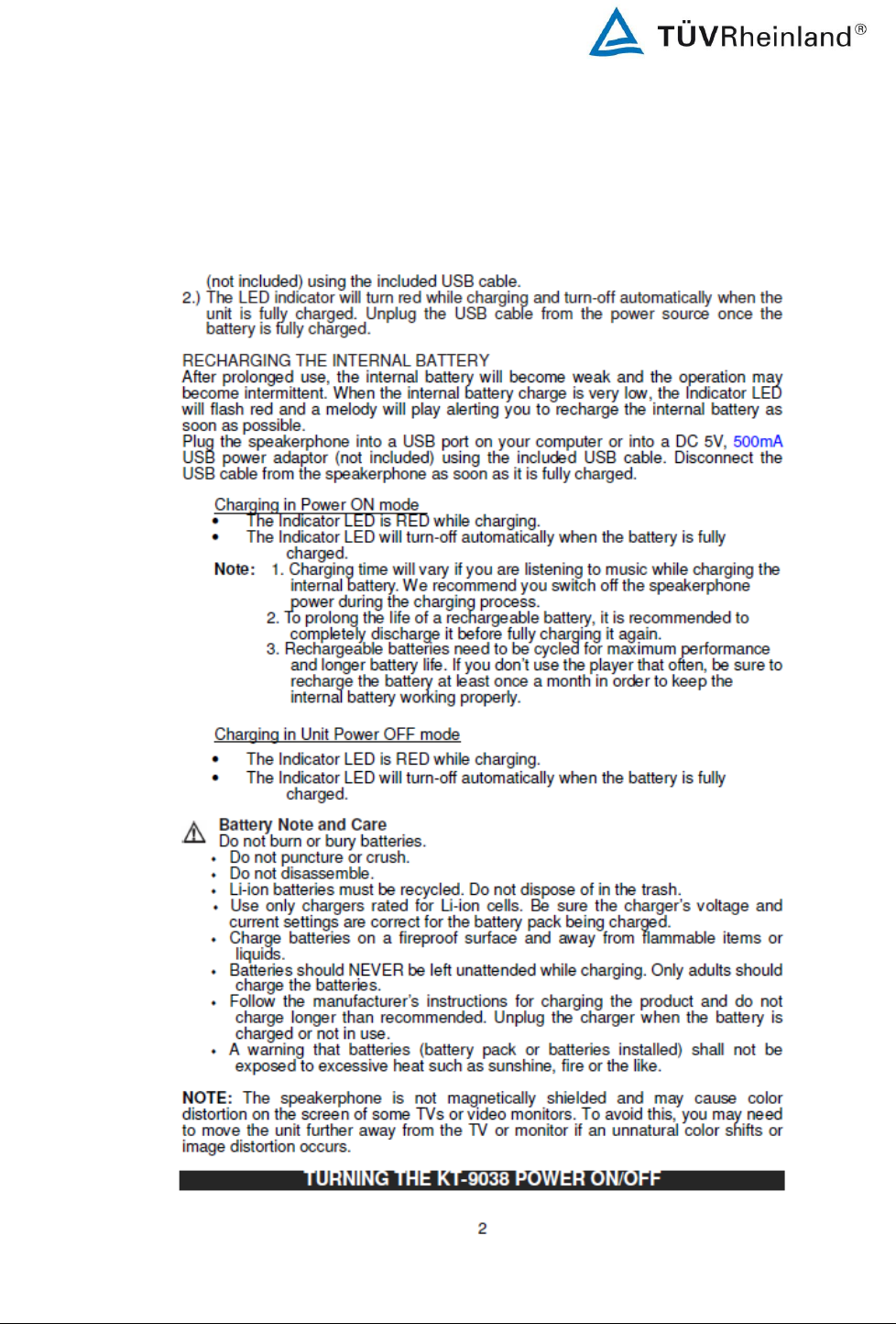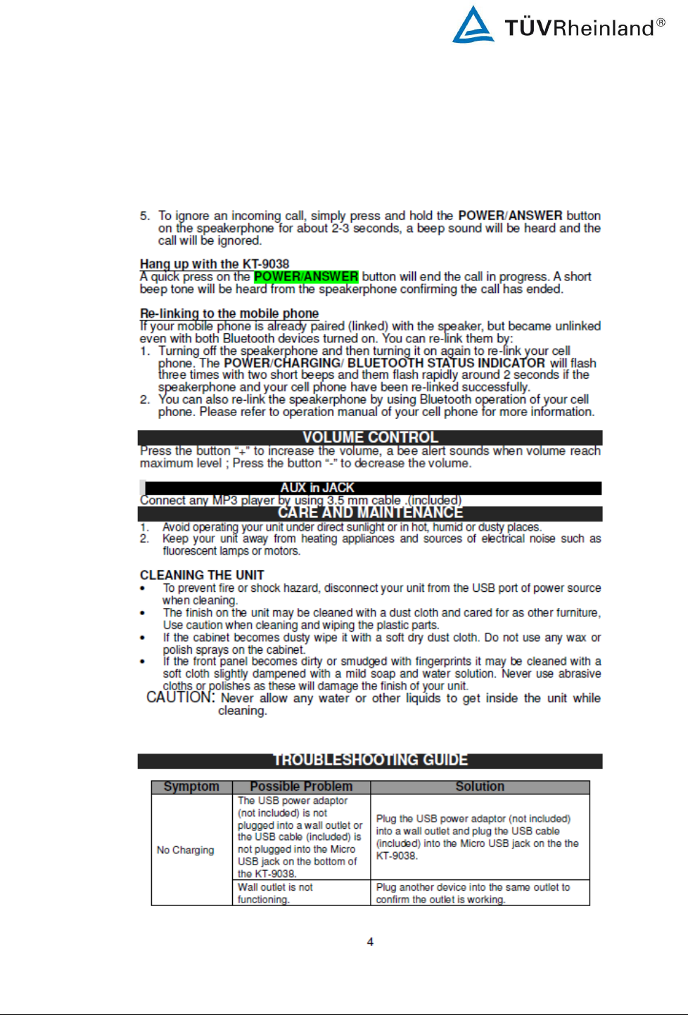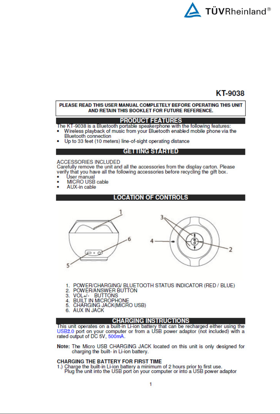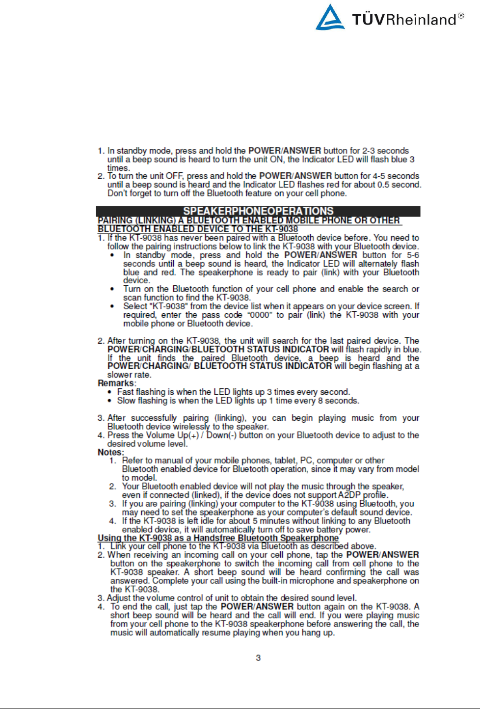 Kan Tsang New Technology Development 9038 Bluetooth Speaker User Manual 14032513 001 FCC