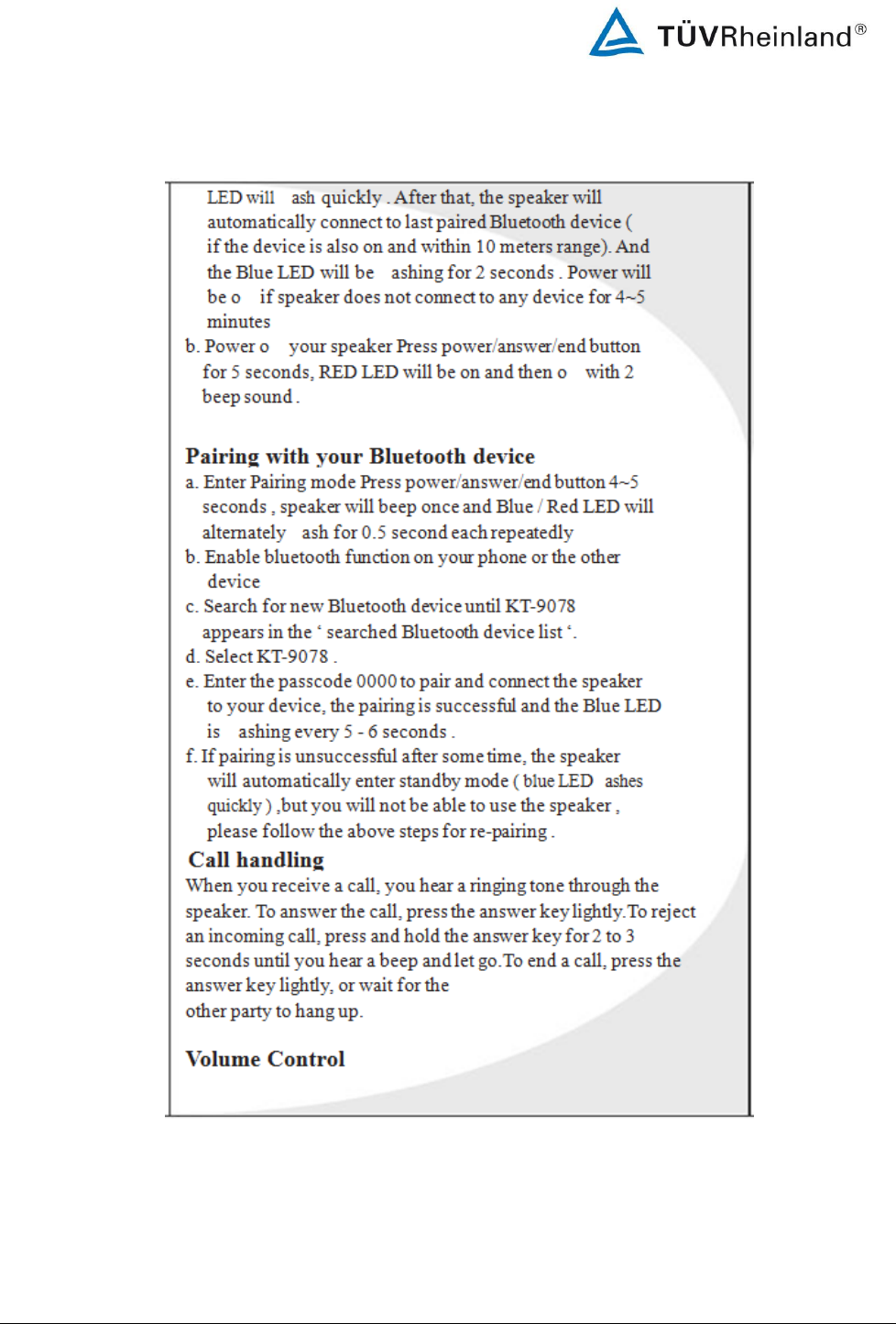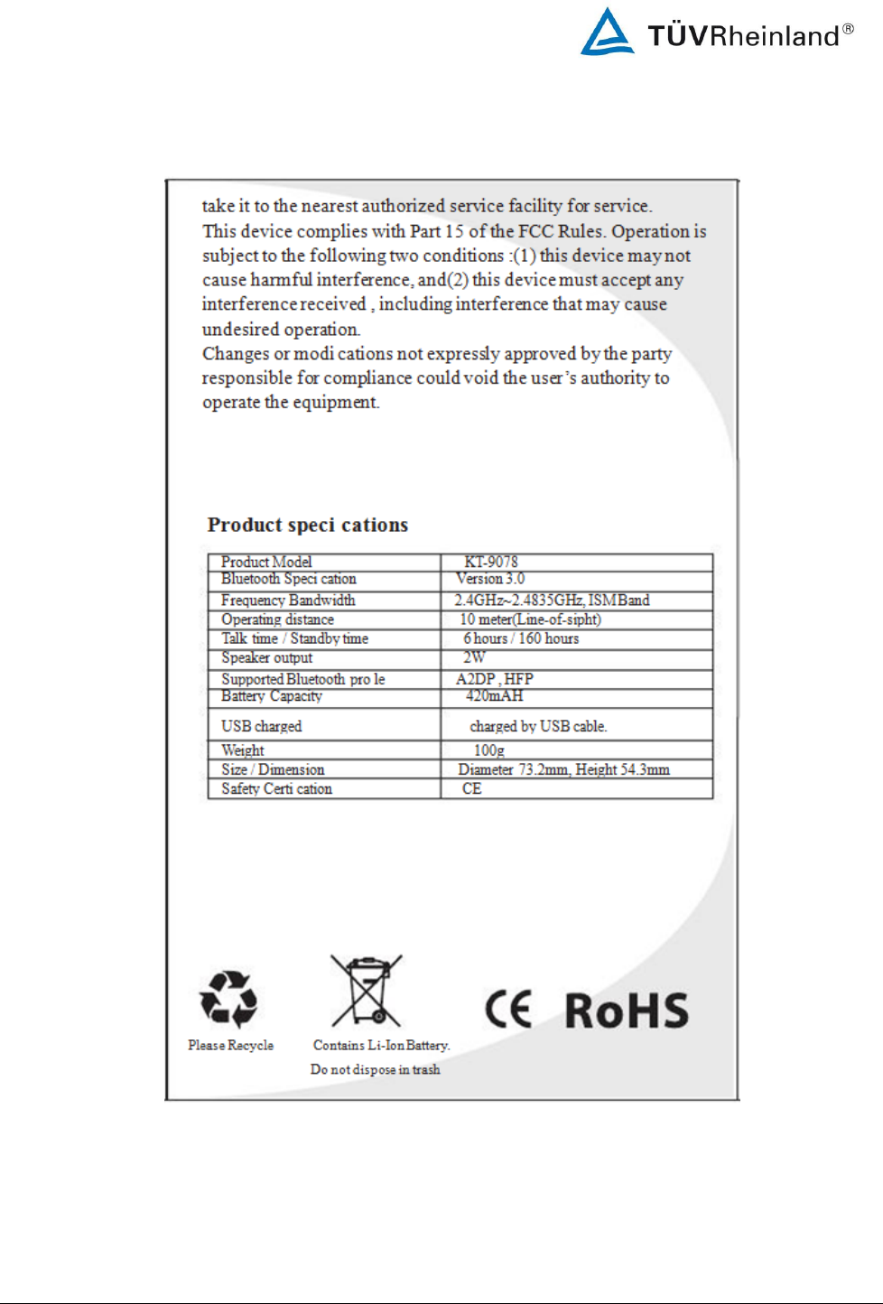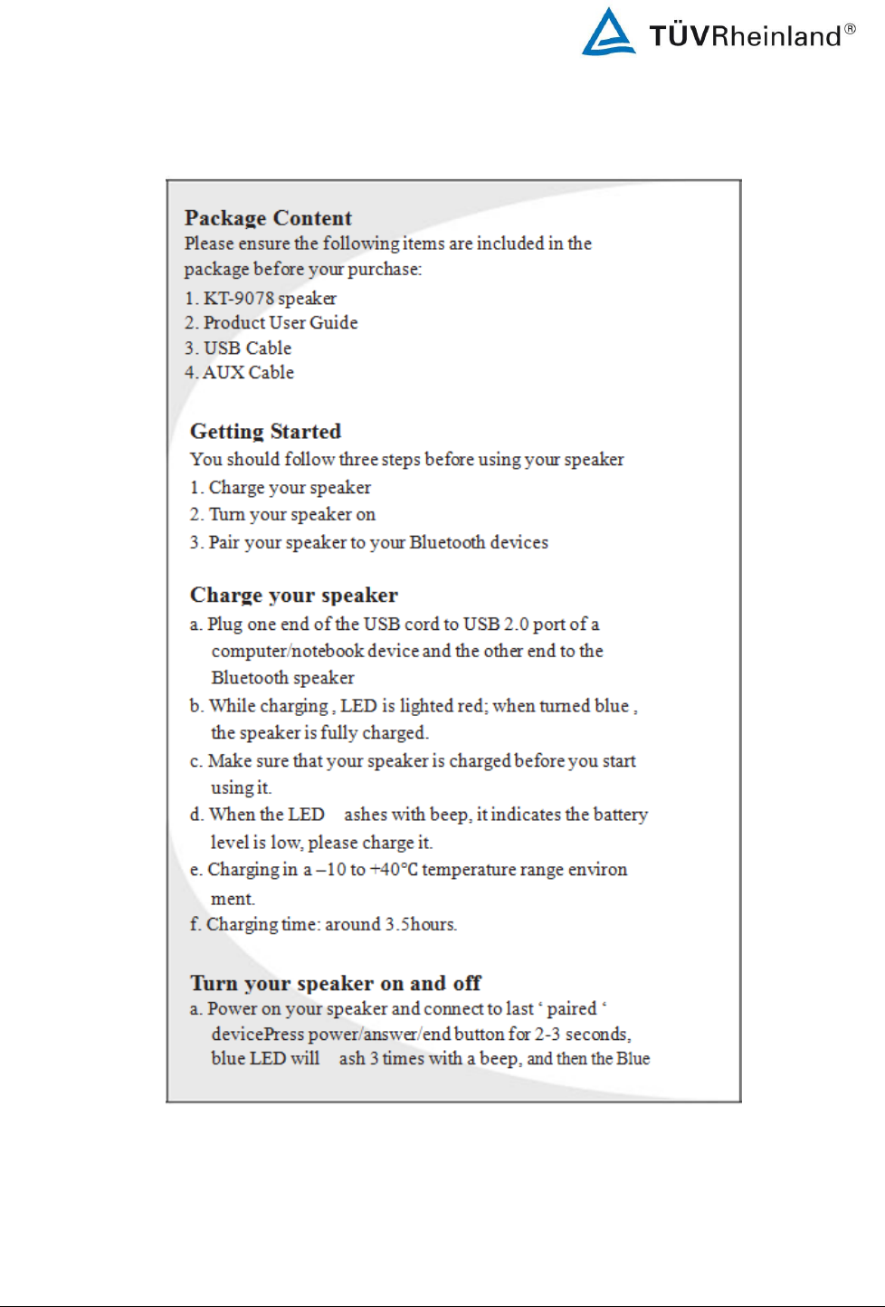Kan Tsang New Technology Development 9078 Bluetooth Speaker User Manual 14032501 001 FCC