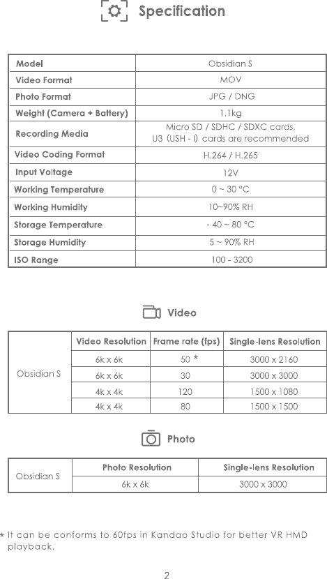 Kandao lightforge KDOY 3D VR Digital Camera User Manual Obsidian S Fcc CE