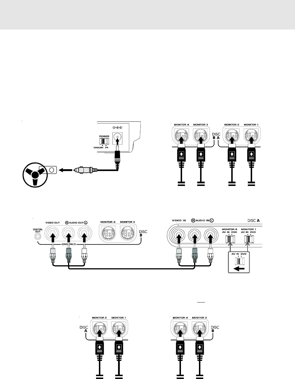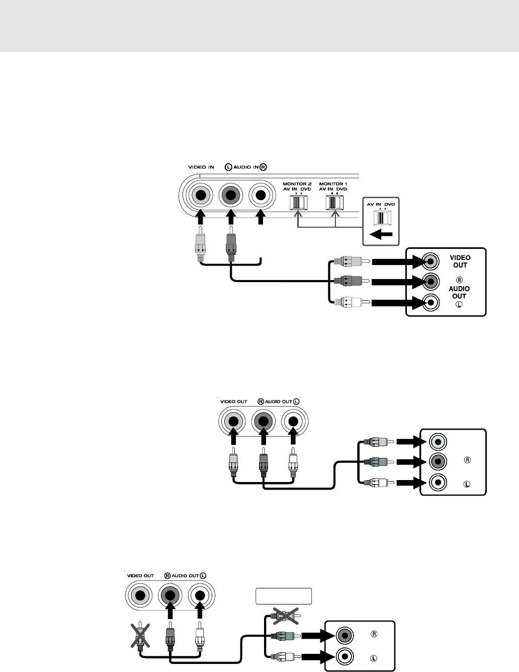 • Make sure that AUDIO / VIDEO output and AV IN input connections are correct.