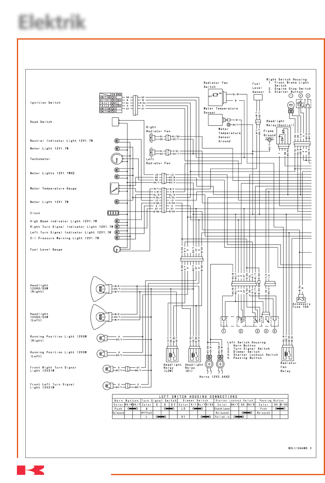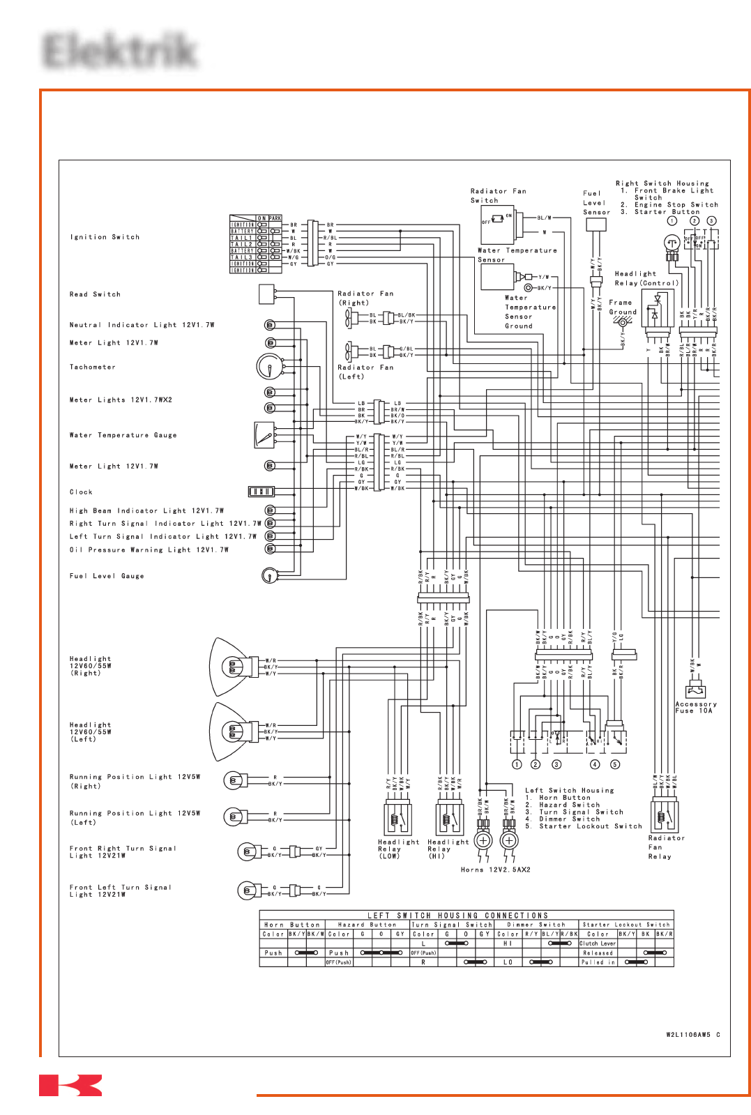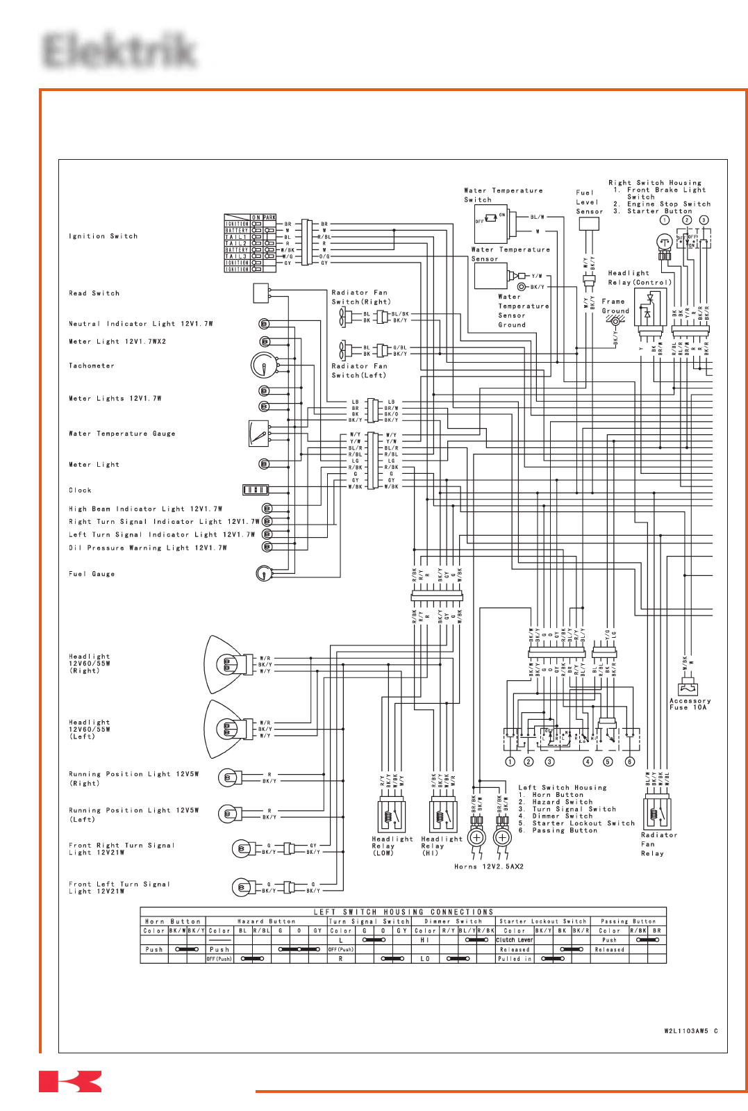 Farbe BL/Y BL R/BL R/W Farbe BK BK Farbe Y/R R Farbe BK/R BK/R