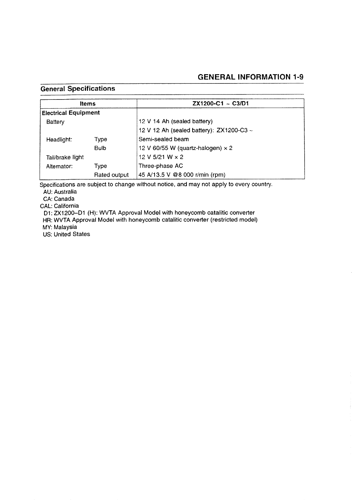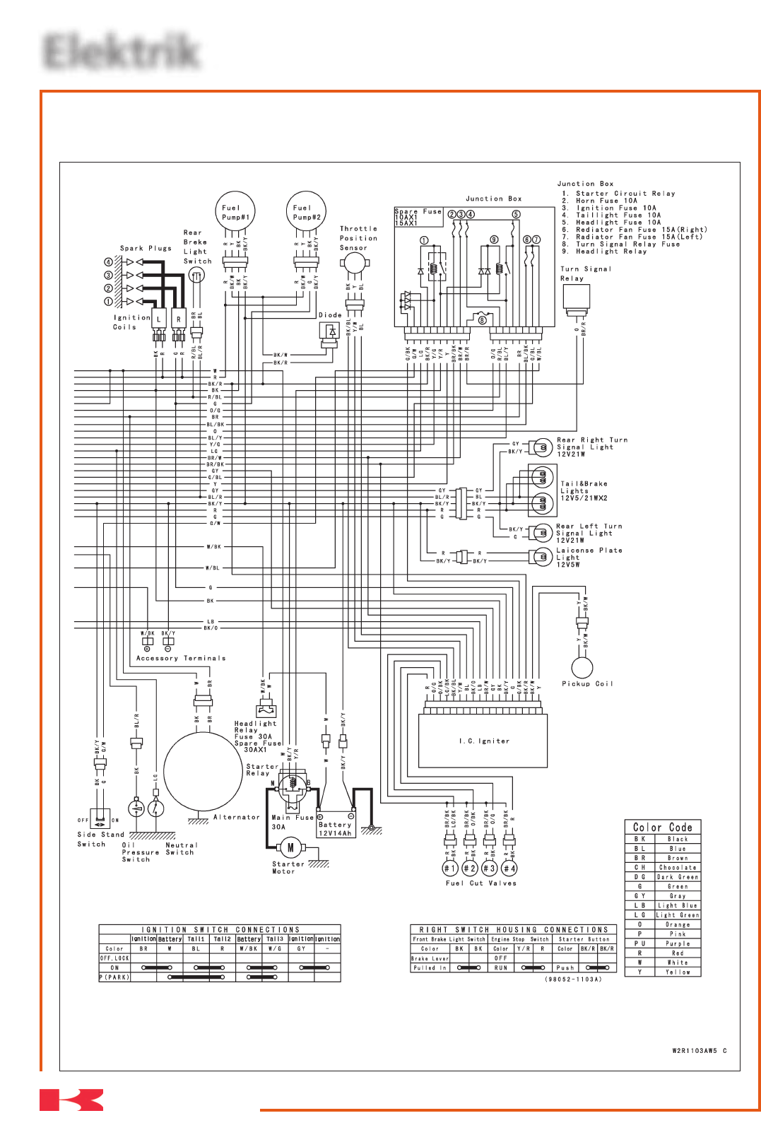 ZX-1200-C1 Schaltplan (Alle Modelle außer Australien, Kanada, Malaysia und USA)