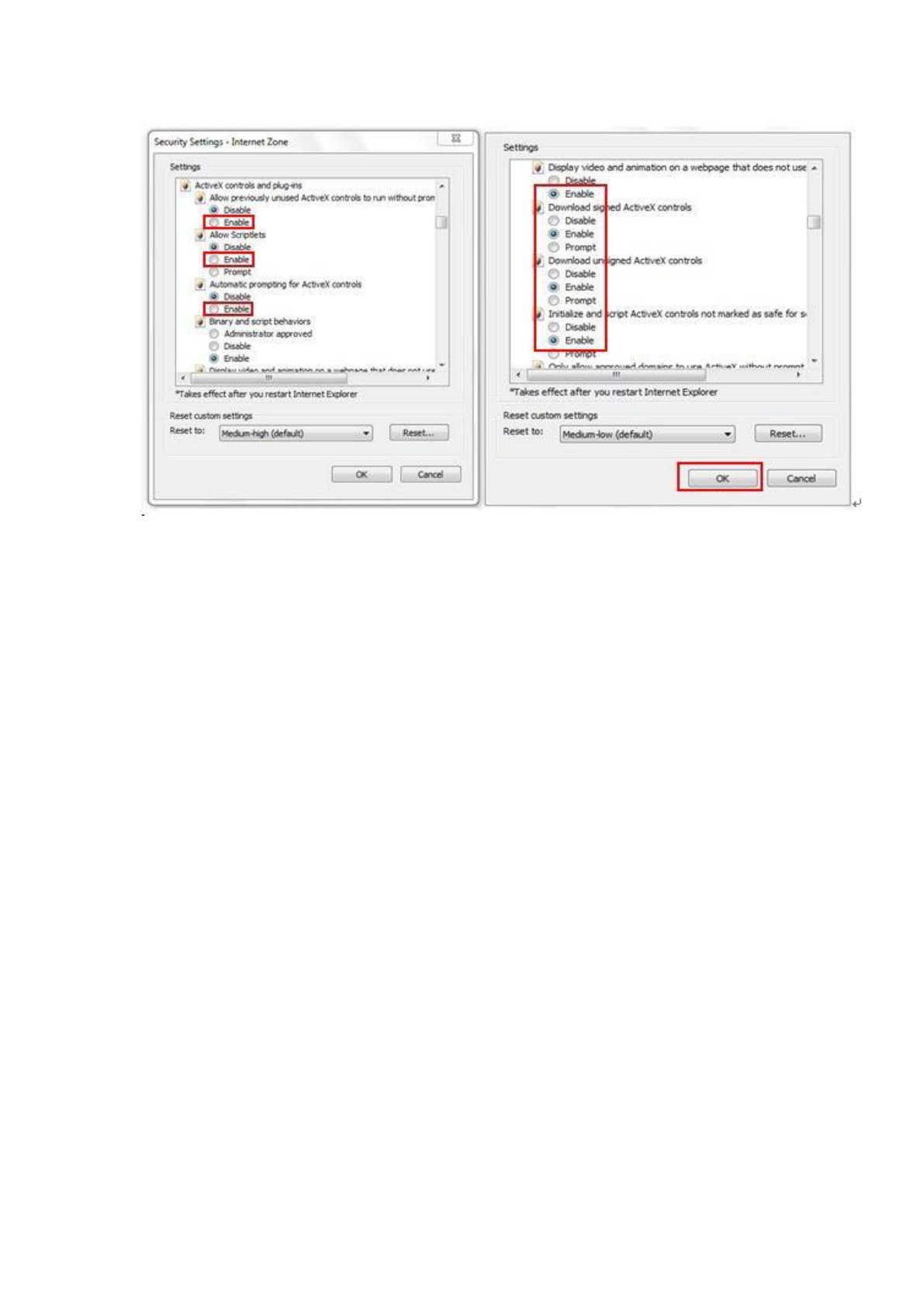 Note:If there is still no live video after run OCX ActiveX,please try to enable the