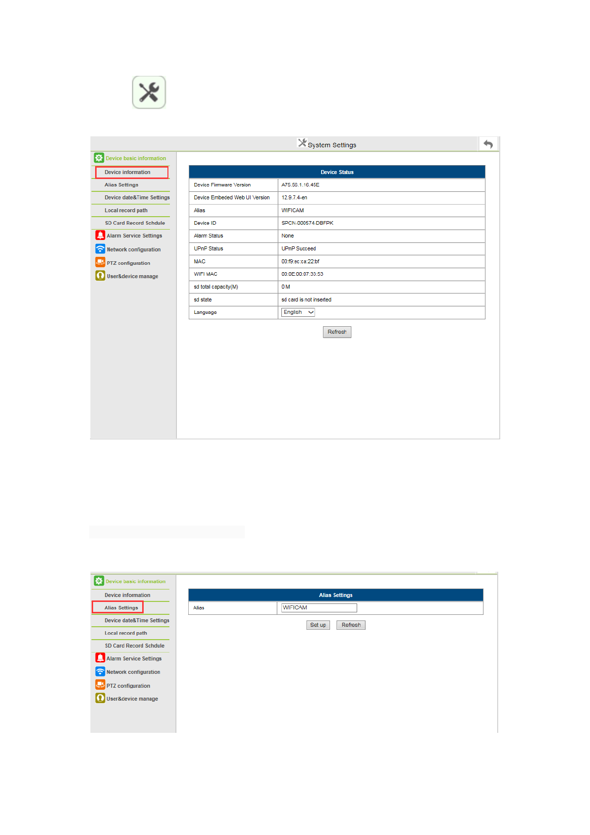 Click the “!” In the red circle,the camera settings are available,refer to picture 8