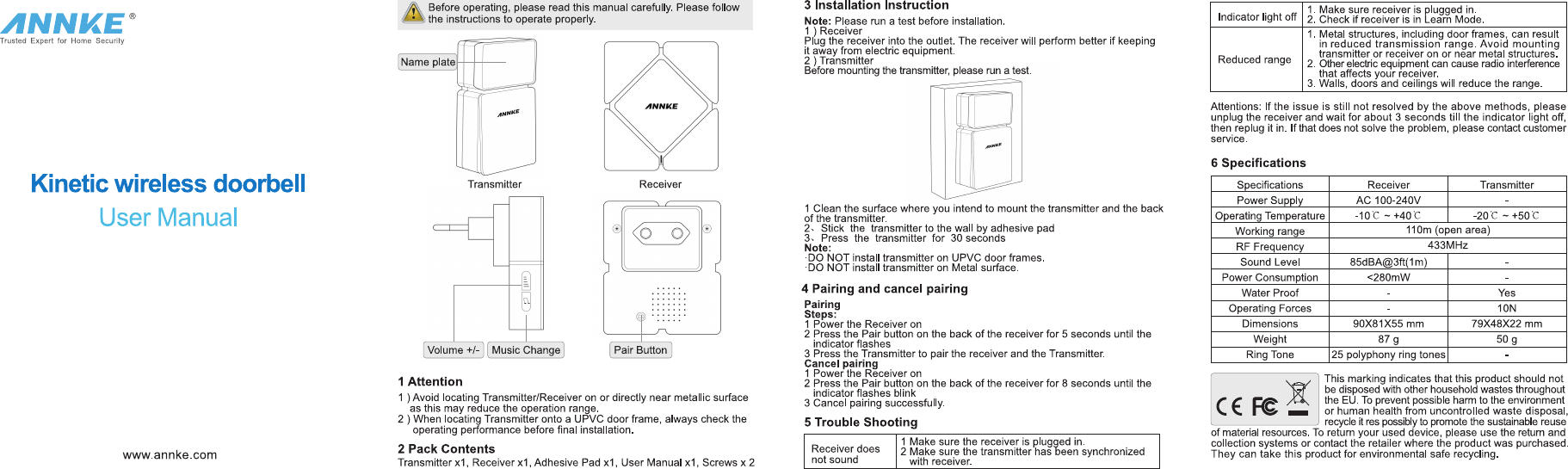 Kean Digital M108 Wireless door bell User Manual Users manual