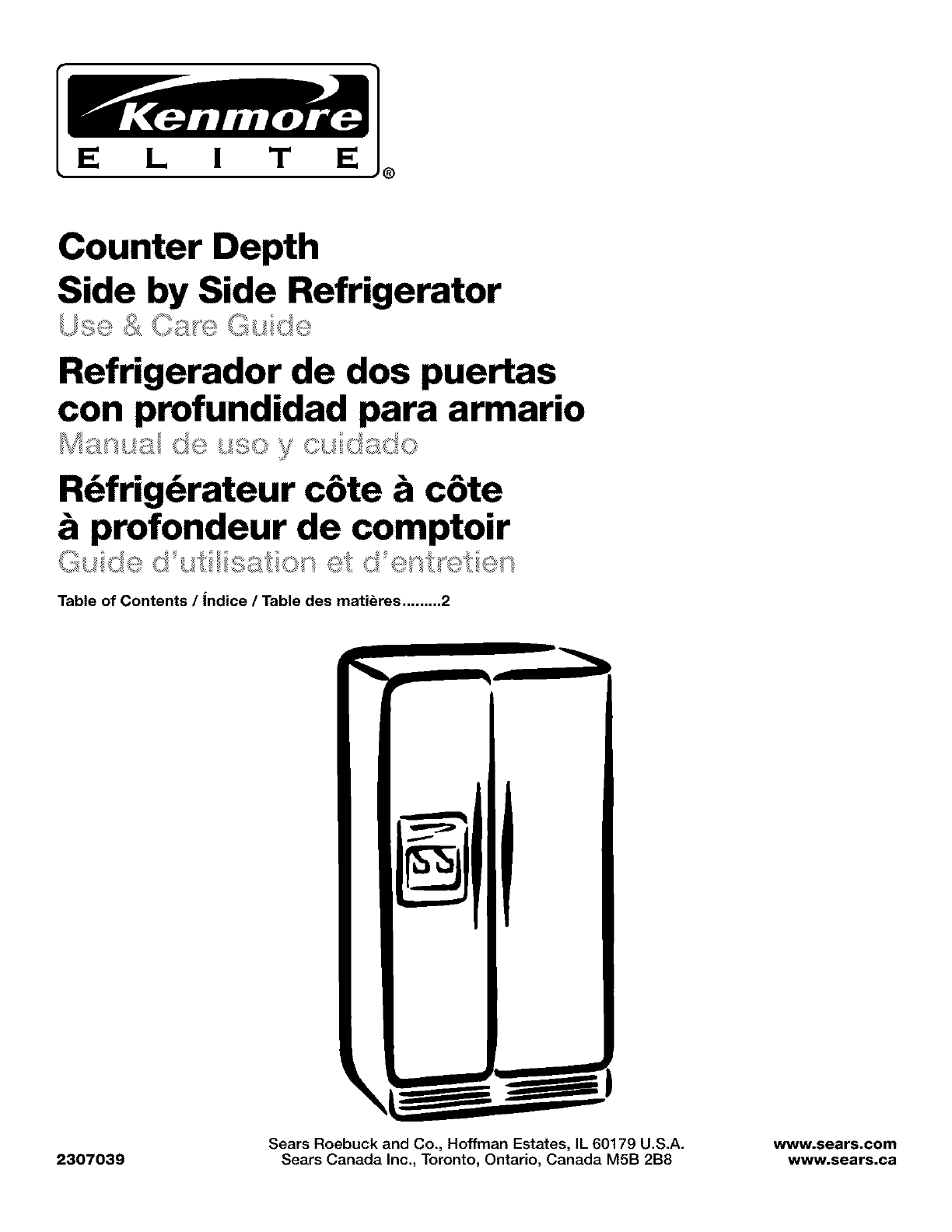 Kenmore Elite 10641523500 User Manual SIDE BY REFRIGERATOR Manuals And Guides L0408622