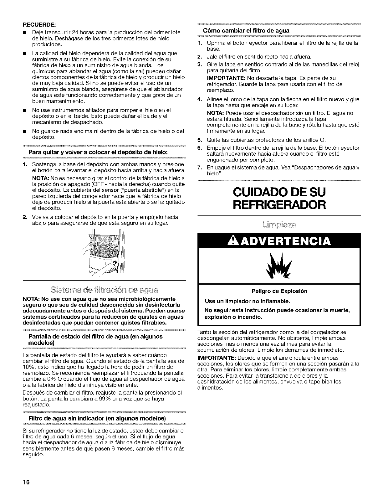 CUIDADO DE SU REFRIGERADOR ............. 16