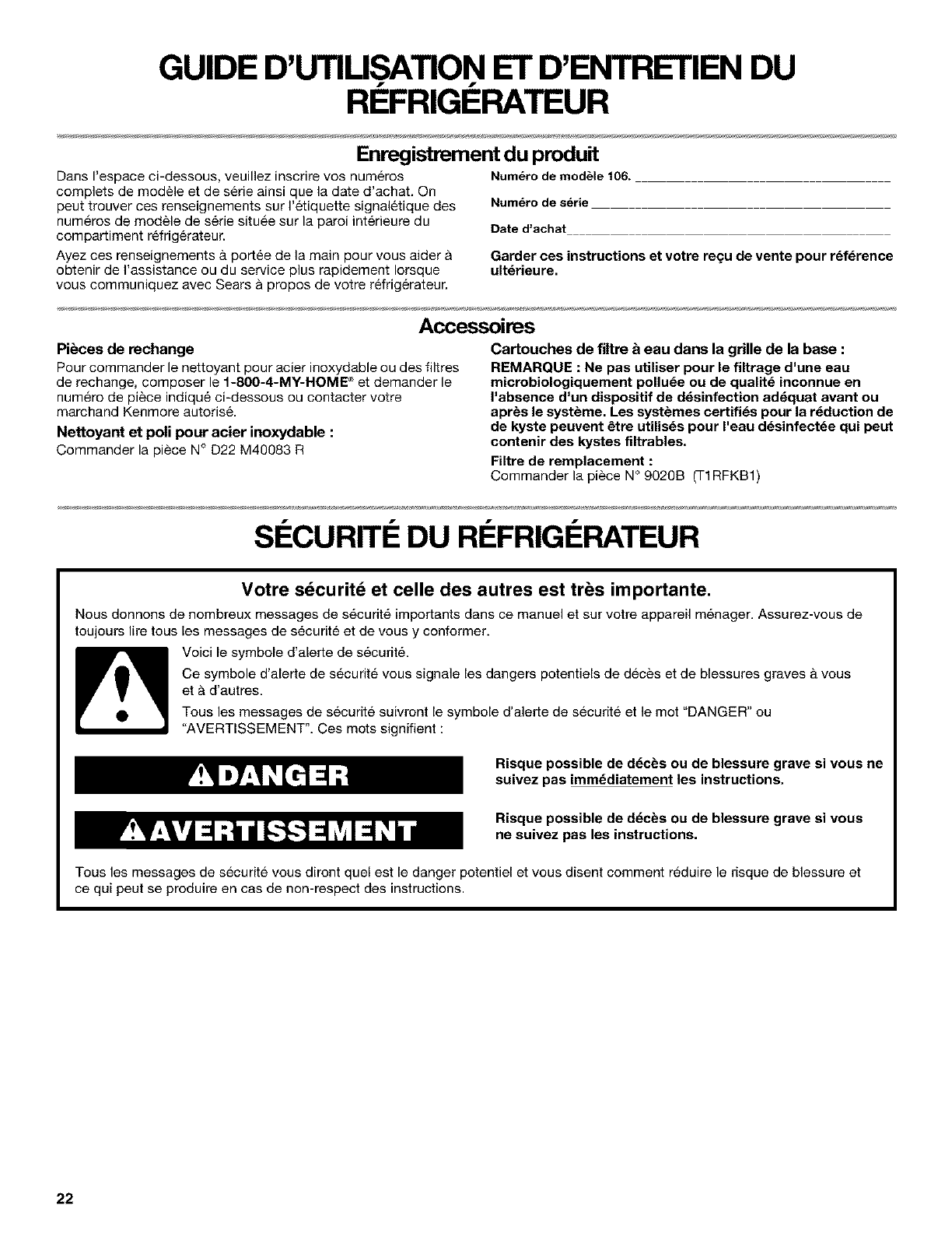 Votre produit Kenmore ® est congu, fabrique et verifie pour qu'il