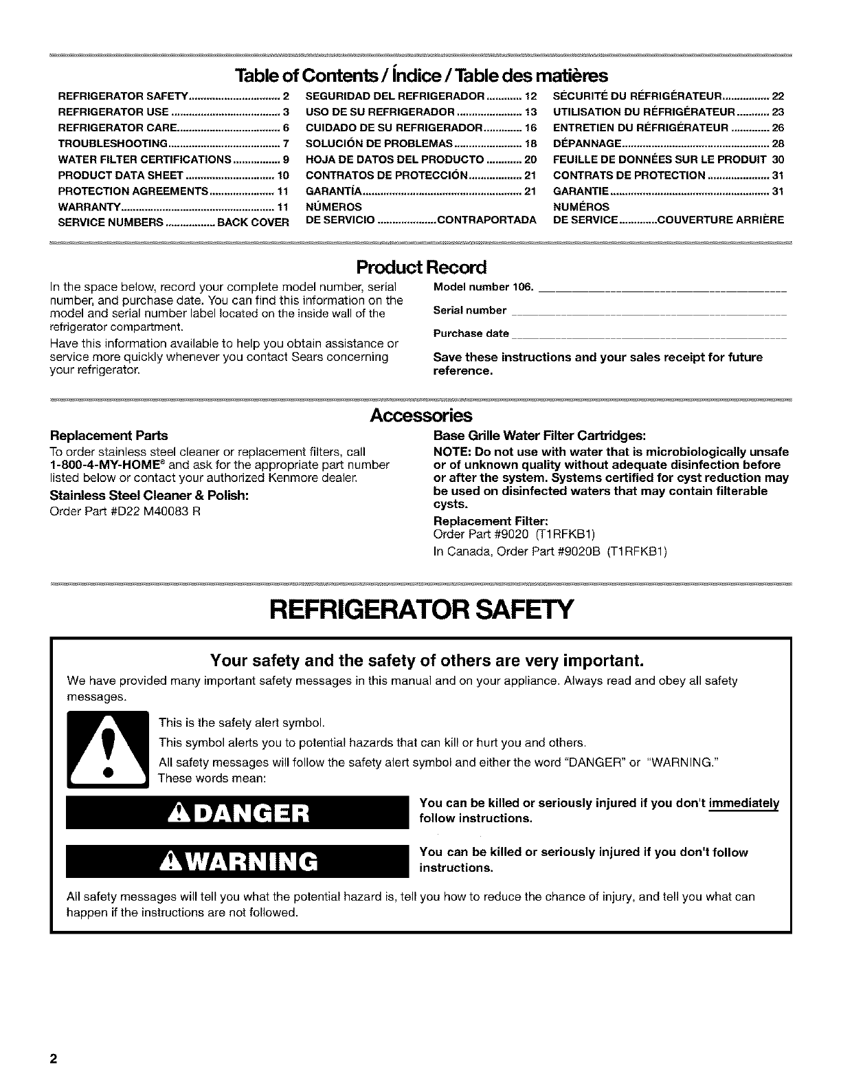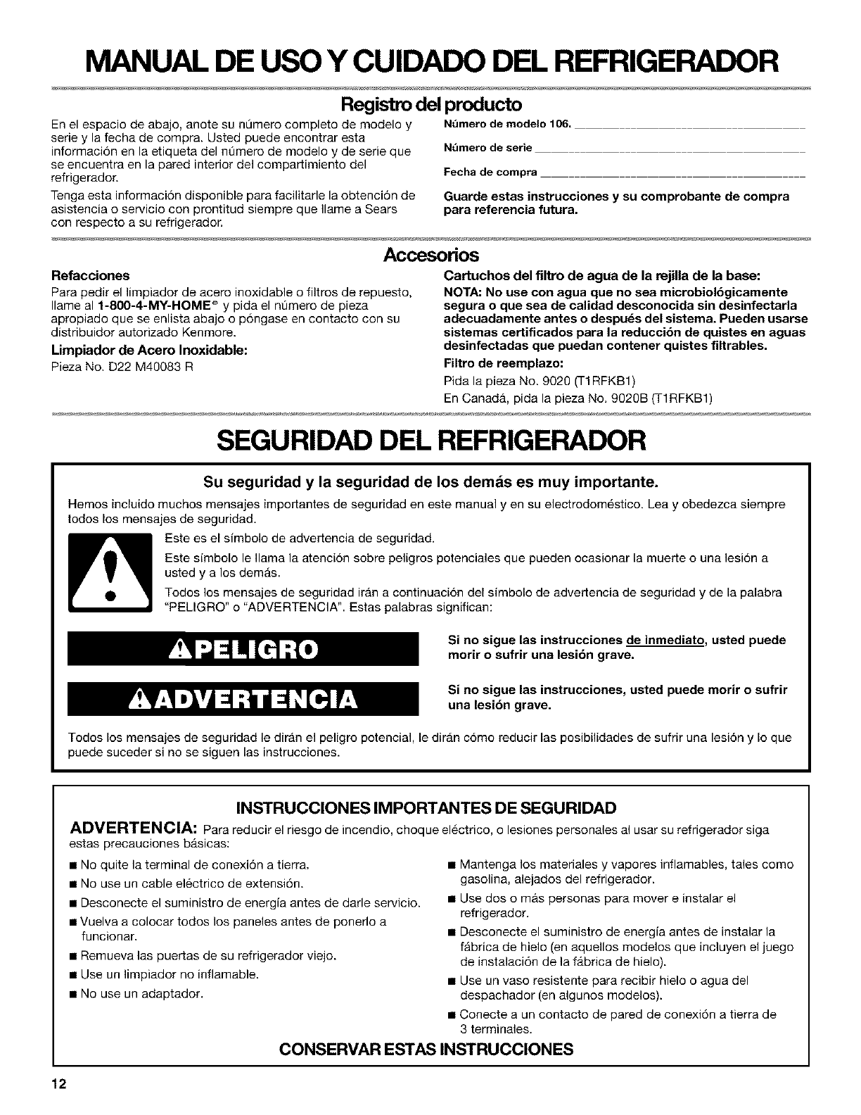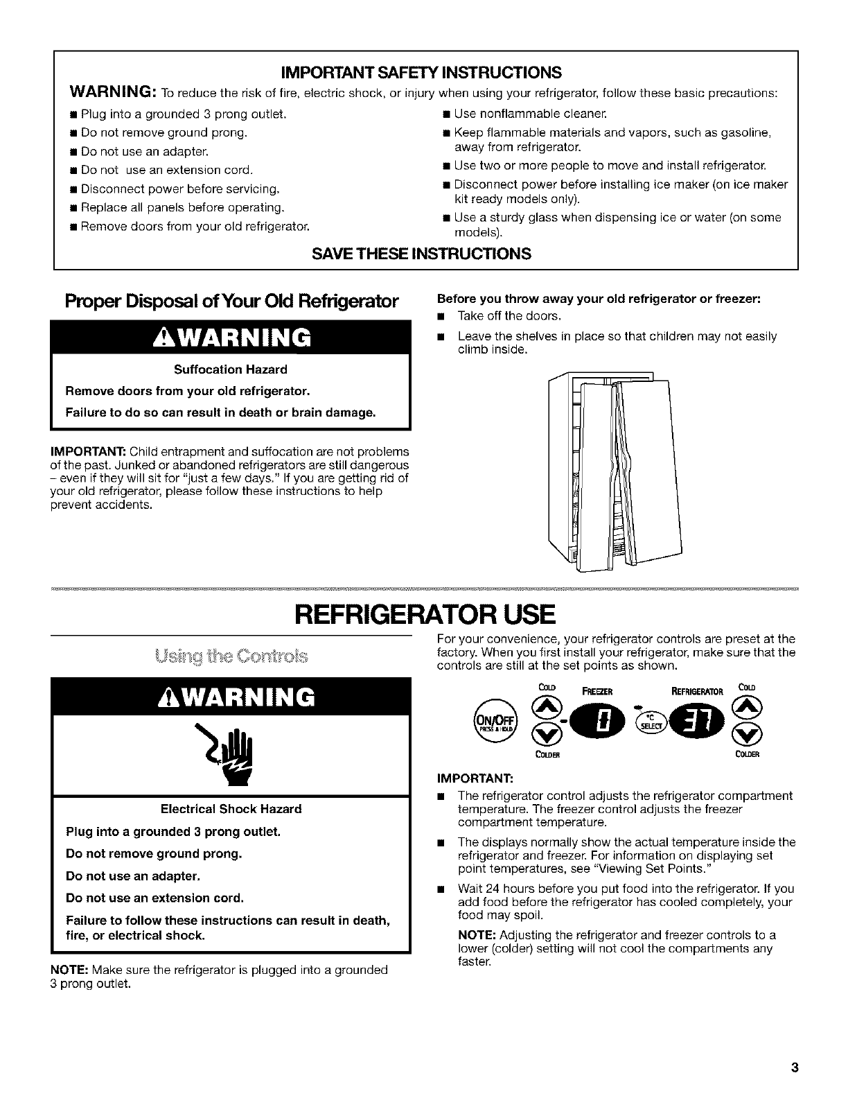KENMORE Side by Side Refrigerator Manual L0408622 KENMORE Side by Side Refrigerator Owner's Manual, KENMORE Side by Side Refrigerator installation guides