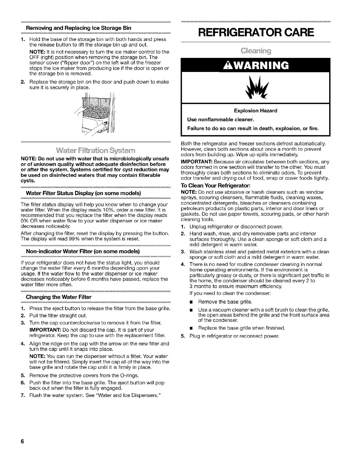WARNING: To reduce the risk of fire, electric shock, or injury when using your refrigerator, follow these basic precautions: