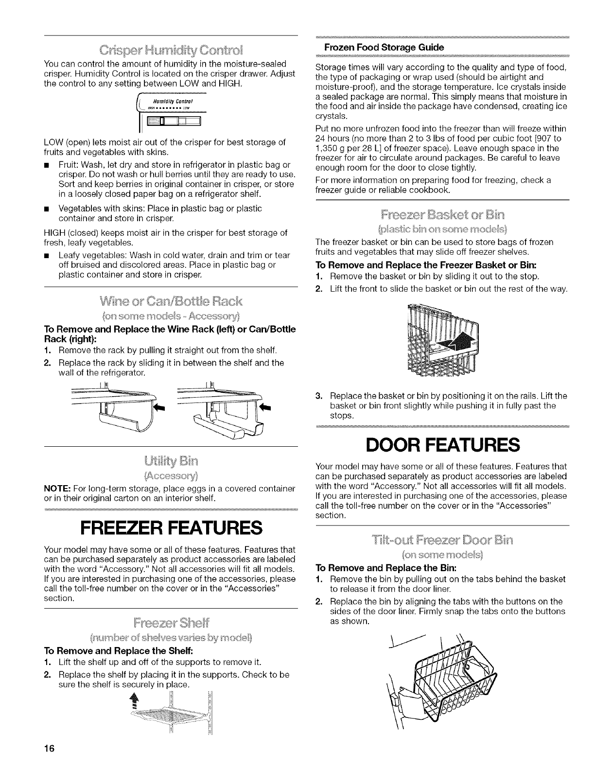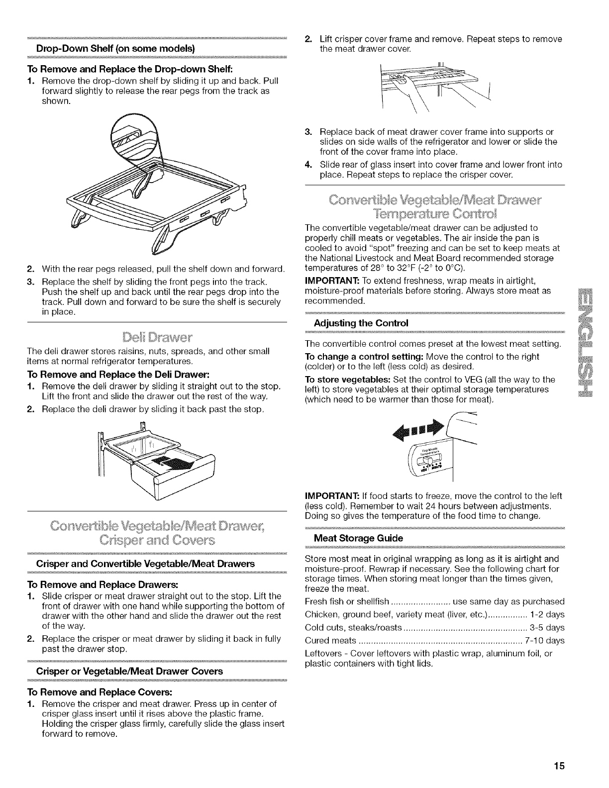 Convertible Vegetable/Meat Drawer, Crisper and Covers ....... 15